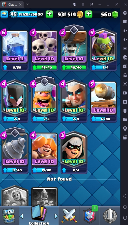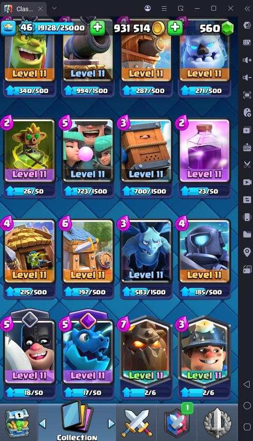 9416 TROPHY 🏆 46 LVL 💯 KT 14 👑 119 CARDS ♦️ 11 MAX CARDS 👑 1 ELITE CARDS 🔮 11 EVO 💯 EMOTE 54 🎭 #UQ200YGJU ⸱ TAG ACCOUNT ♥️