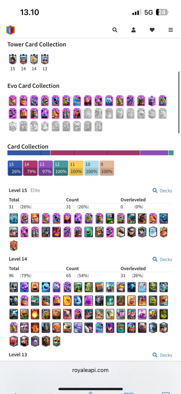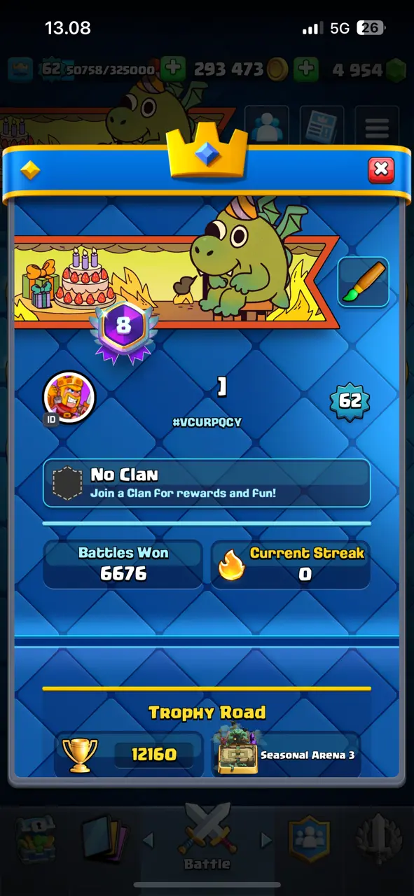 🔥 Awesome Rarest 🔥 CR Lv.62 🔥 8 Years Played 🔥 Change Name ON 🔥 Seasonal Arena 3 🔥 12160 Trophies 🔥 KT 15 🔥 22 Evo Cards 🔥 96 Max Cards & 31 Elites 🔥 140 Emotes 🔥 13 Tower Skins 🔥 [F2790] 🔥