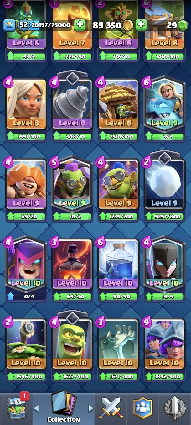 CR LV 52 🔥 KT 14 🔥 Max Cards 31 🔥 Evo 12 🔥 Elite 2 🔥 Trophy 9559 🔥 Cheap & Safe account🔥