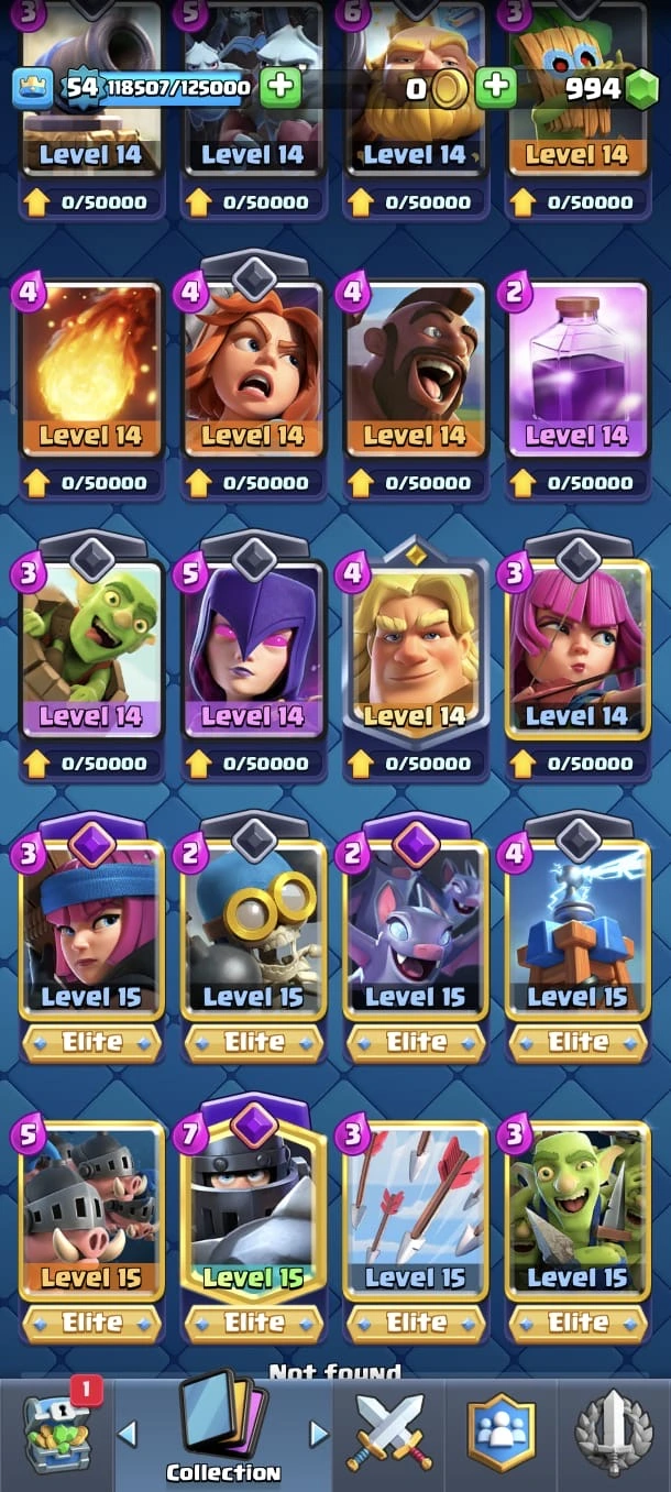 CR LV 54 🔥 Max Cards 25 🔥 Elite  8 🔥 Evo 3 🔥 Trophy 15365 🔥 Change name on 🔥 Very cheap & Safe account🔥