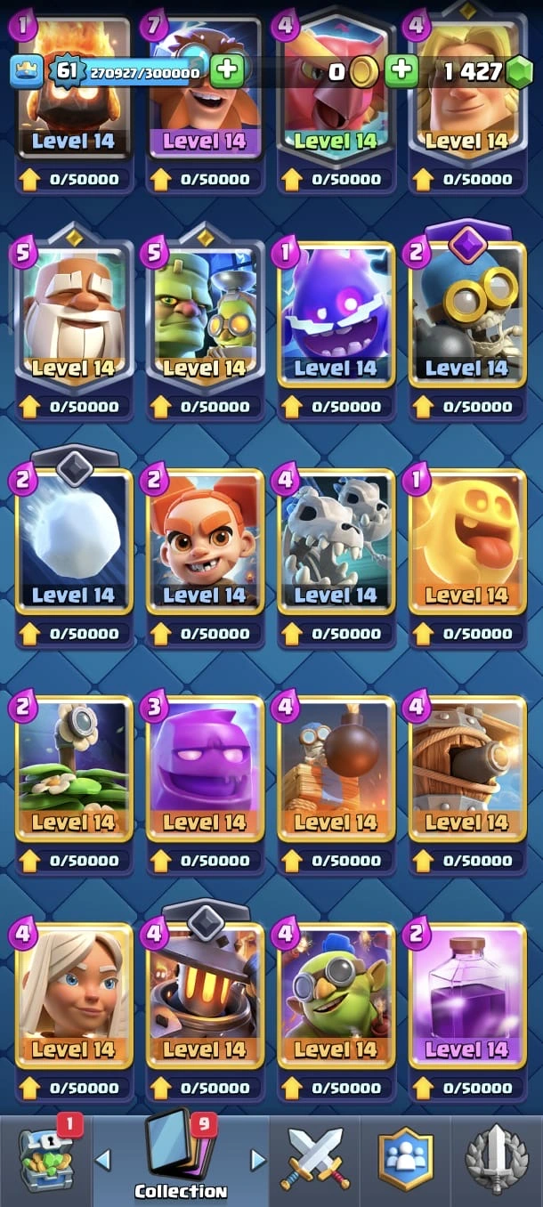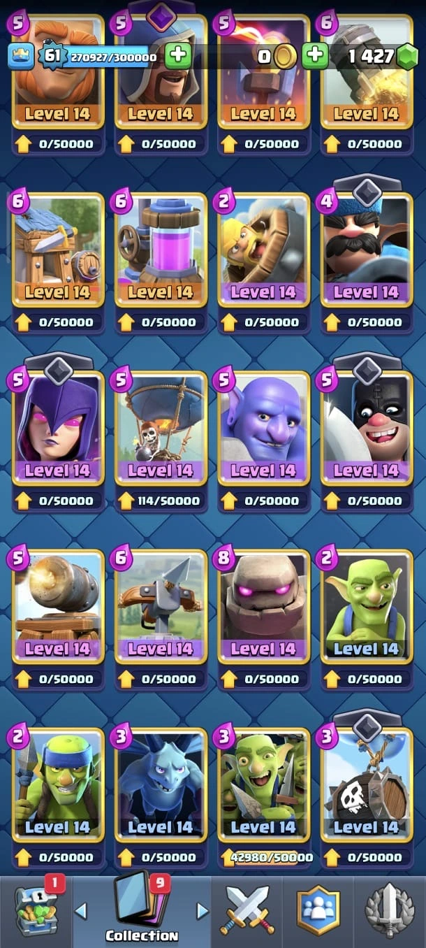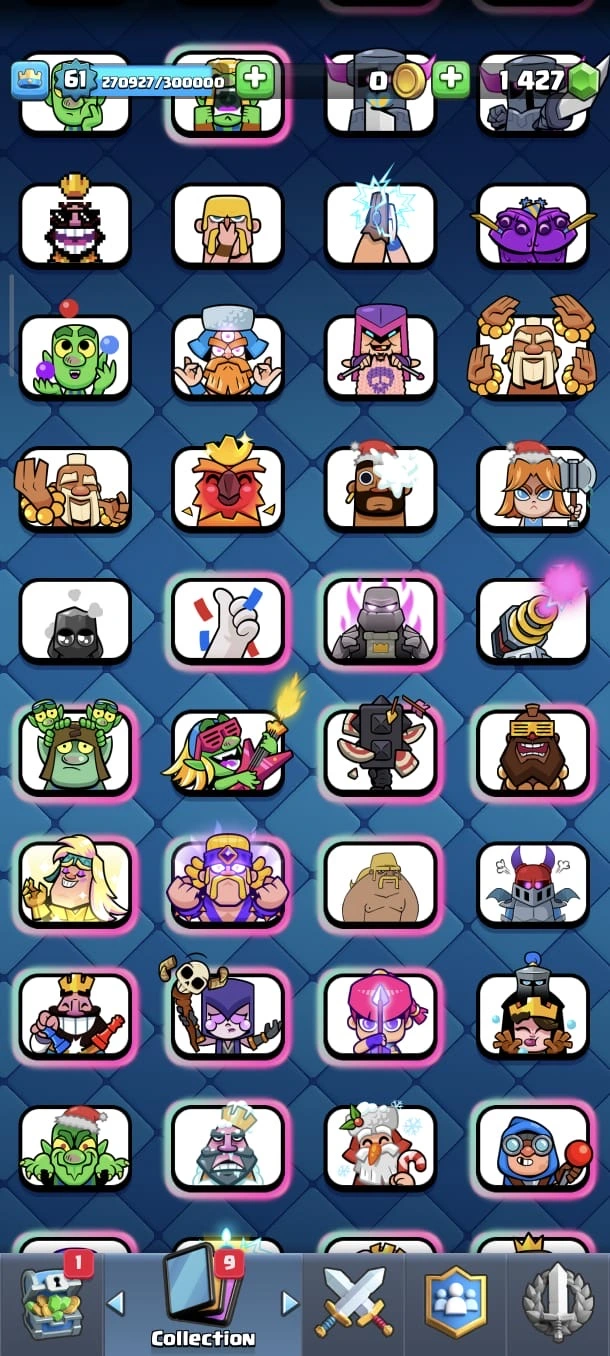 CR LV 61 🔥 Max Cards 100 🔥 Elite 32 🔥 EVo 16 🔥 Emote 112 🔥 Trophy 13800 🔥 Change name free 🔥 Very cheap 🔥
