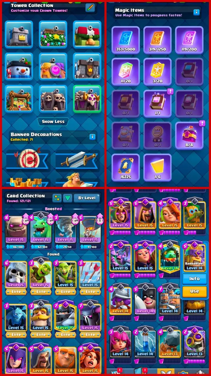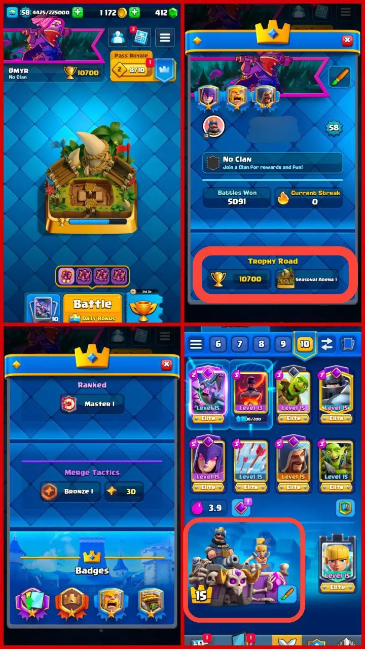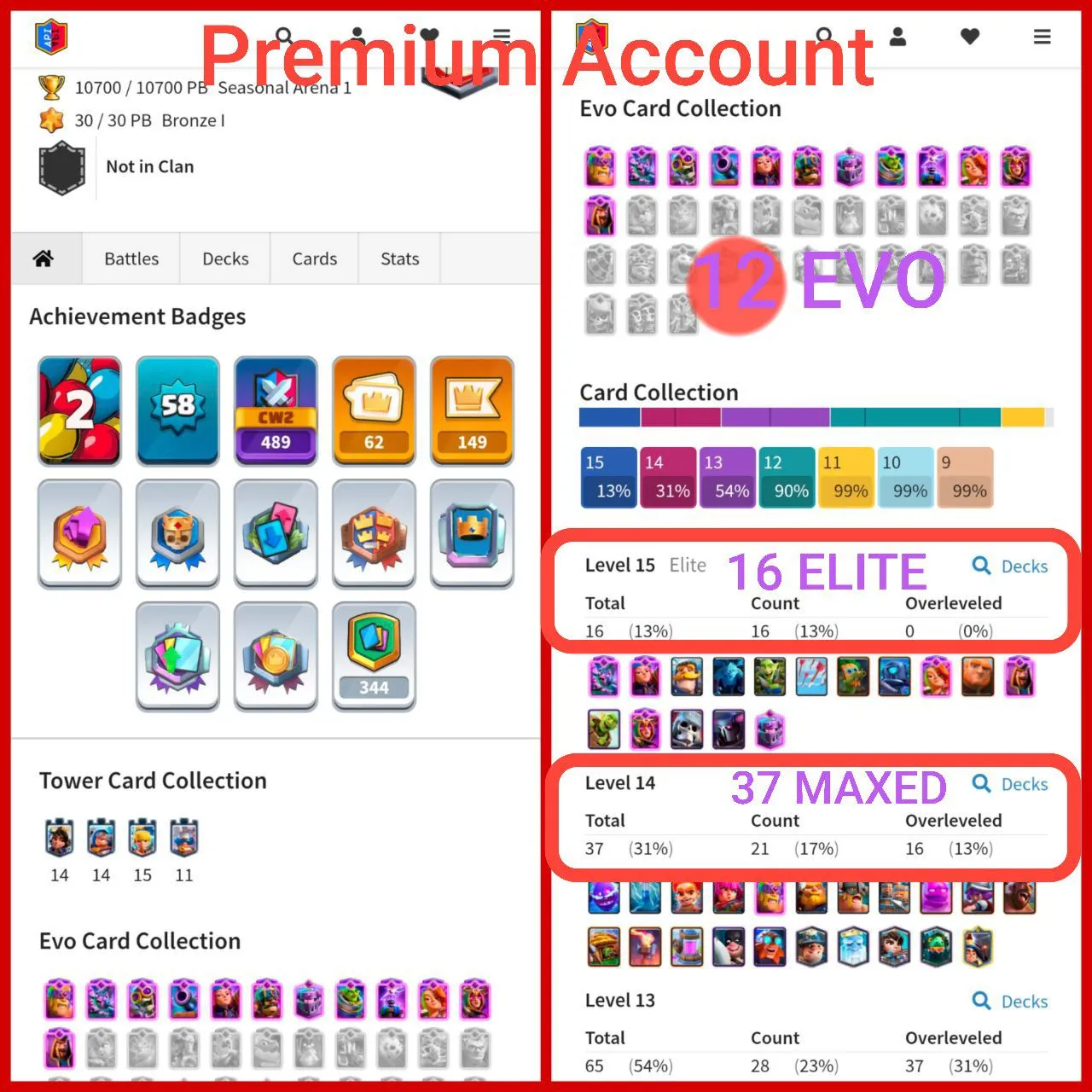 EXCLUSIVE ACCOUNT 🔥 10700-TROPHIES 🏆 SEASONAL ARENA-1 🌟 121 CARDS / 37 MAXED / 16 ELITE / 12 EVO 🔥 62 EMOTES 💫 KT-15 👑 58 XP 🔵 INSTANT DELIVERY 🚚