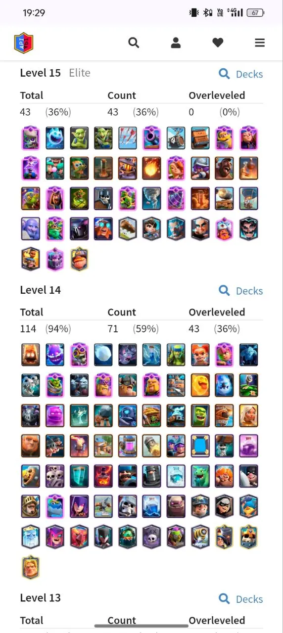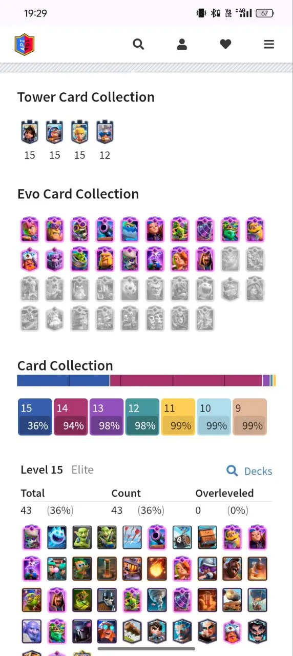 ✨KT (15)🔥10.5K + TROPHIES 🥰64 XP 🥳121 CARDS 💥 18 EVOLUTION CARDS 🃏 43 ELITE CARDS✨ 114 MAX CARD ♦️⚡141 EMOTE🥳INSTANT DELIVERY 🚚CL7