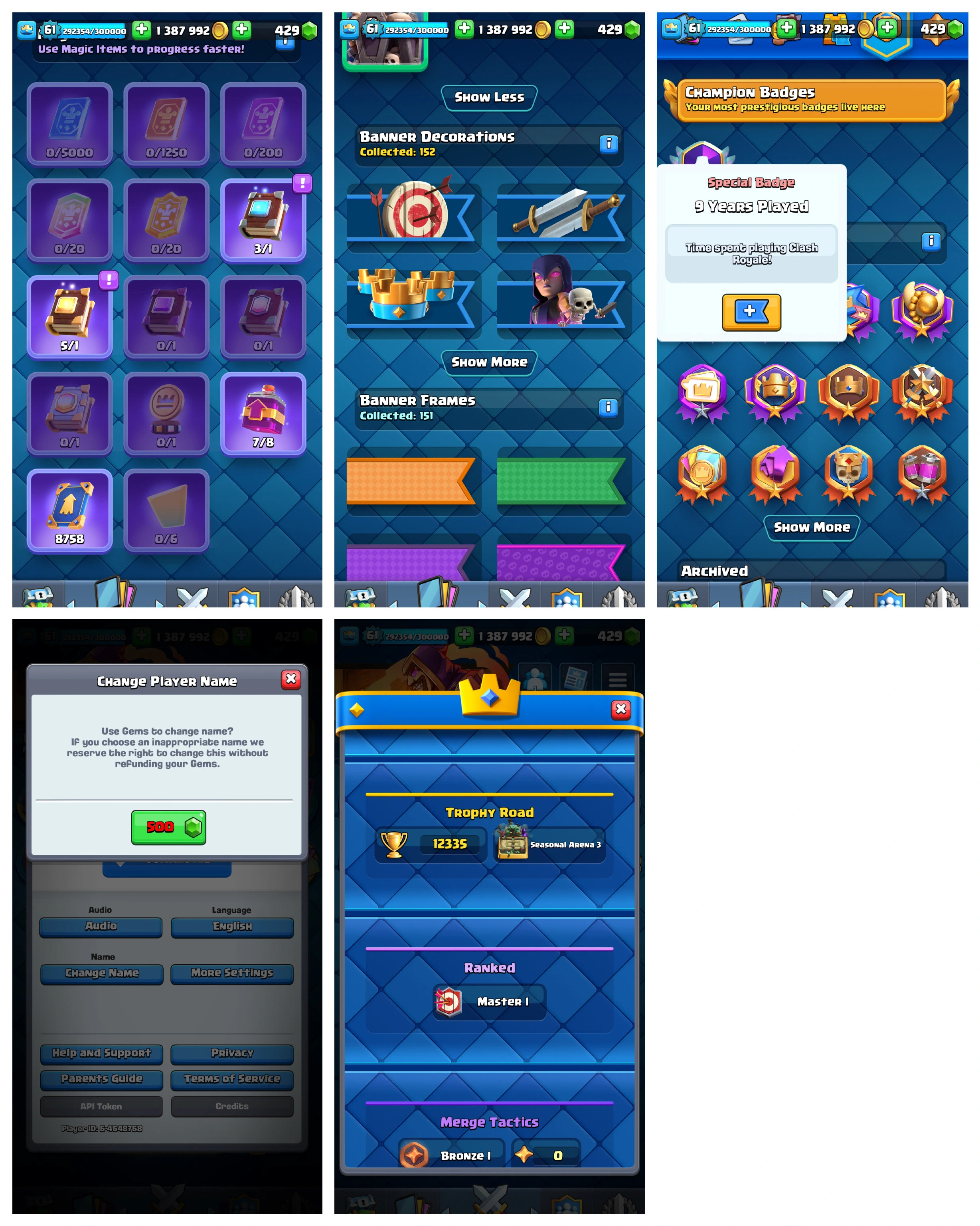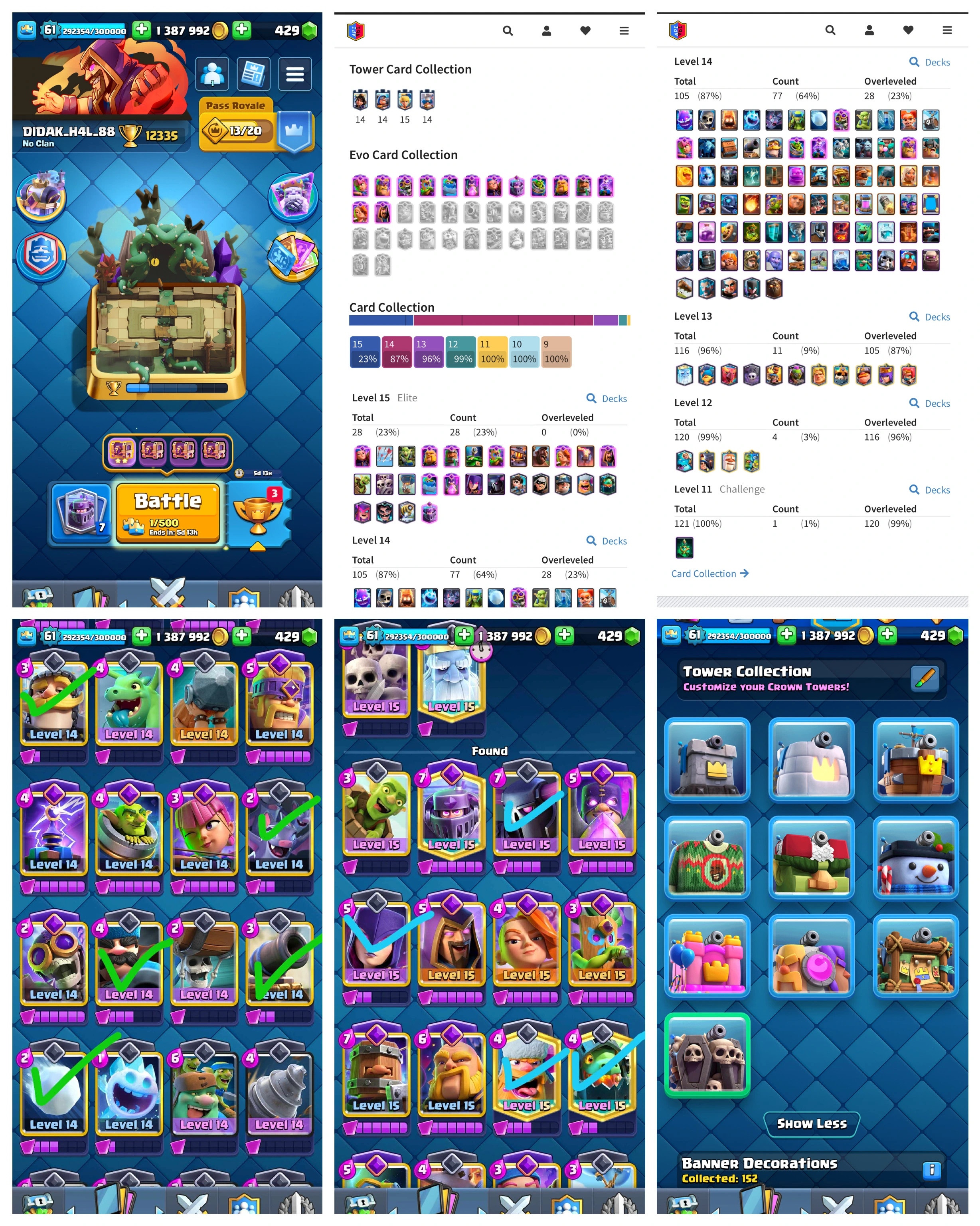 Spain Local✅ Premium KT 15 (LVL.62)✅109 CARDS MAX✅29x Elite Card✅EVOLUTION-14✅EMOTES-138✅TOWER SKINS-10✅1387K GOLD & NC-500✅ANDROID & IOS