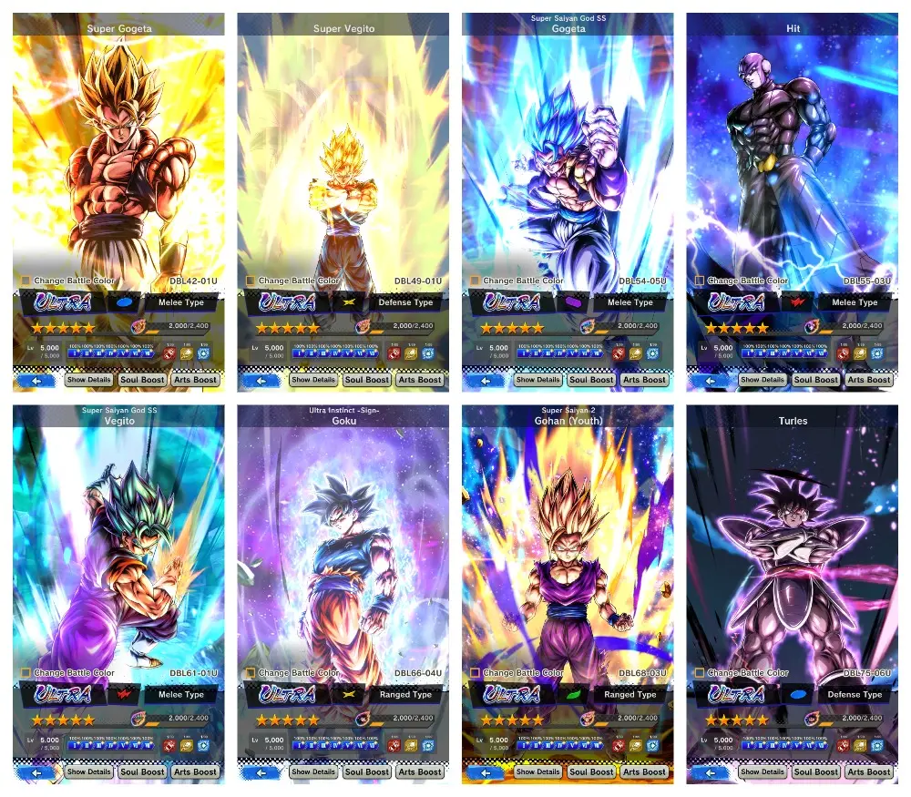 DB1205🔥12 UL🔥19 LL🔥UL Vegito🔥UL Gogeta🔥UL UI Goku🔥UL Sup Gogeta🔥UL Sup Vegito🔥UL Gohan(Youth)🔥UL Turles🔥LL UI Goku red🔥LL SS4 Gogeta grn🔥 260 MlnPwr