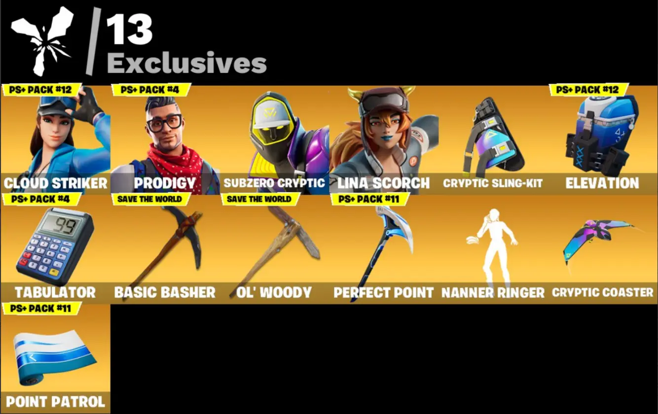 111 Skins ⸱ Cloud Striker | Prodigy | Subzero Cryptic | Lina Scorch | Cryptic Sling-kit | Elevation | Tabulator | Basic Basher | Ol' Woody | Lucky Ninja | Goku Black | O.M.E.G.A. Suit Alpha | Sea Wolf