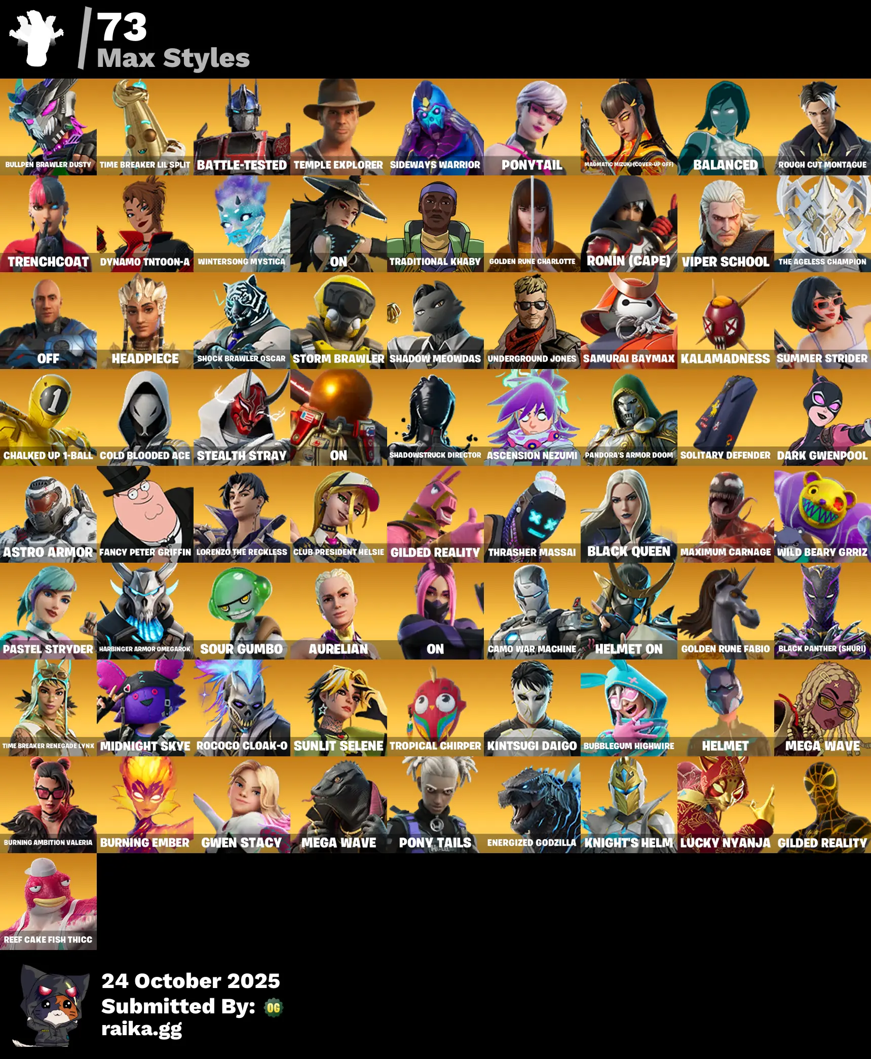 137 skins | Paradigm (Reality-659)🎃Omegarok🎃Spectra Knight🎃The Foundation🎃Mizuki🎃Galaxy Scout🎃Joltara🎃Kado Thorne🎃Twyn🎃Era🎃Valeria🎃Malik🎃Ronin🎃The Cube Queen🎃Nezumi🎃Torin🎃The Ageless🎃Peter Griffin🎃Renzo the Destroyer🎃Snap🎃Inferno D5182