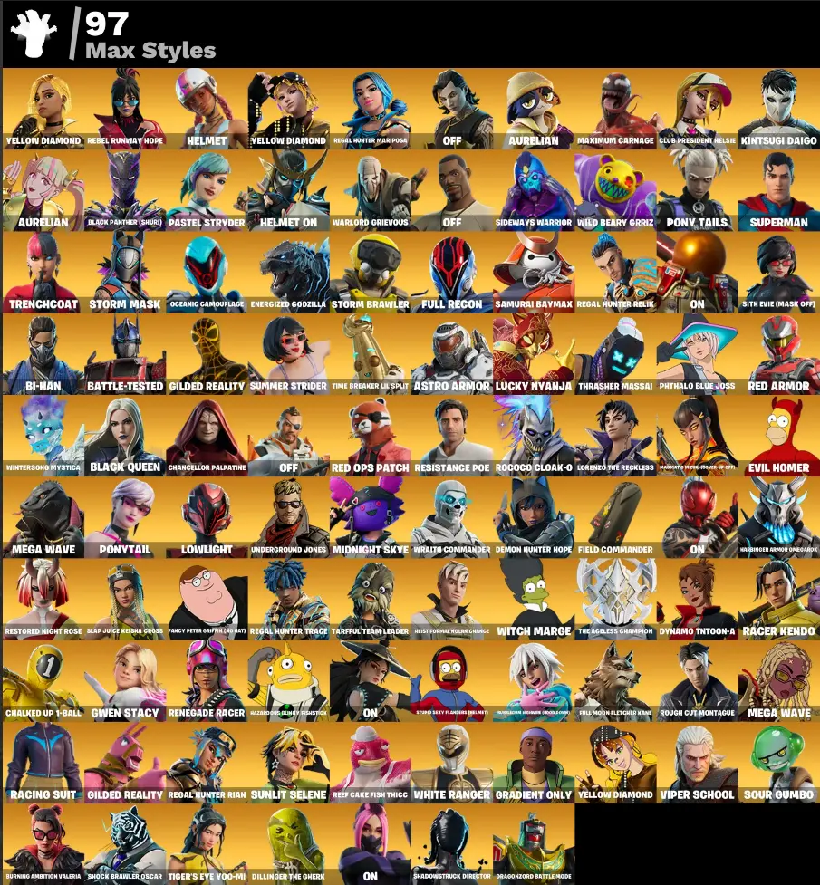 175 skins ⸱ For all platforms | Florin | Valeria | The Origin | Malik | Joey | Era | The Ageless | Twyn | Torin | Snap | Paradigm (Reality-659) | Optimus Prime | Offside Officer | Playboi Carti | Ned Flanders
