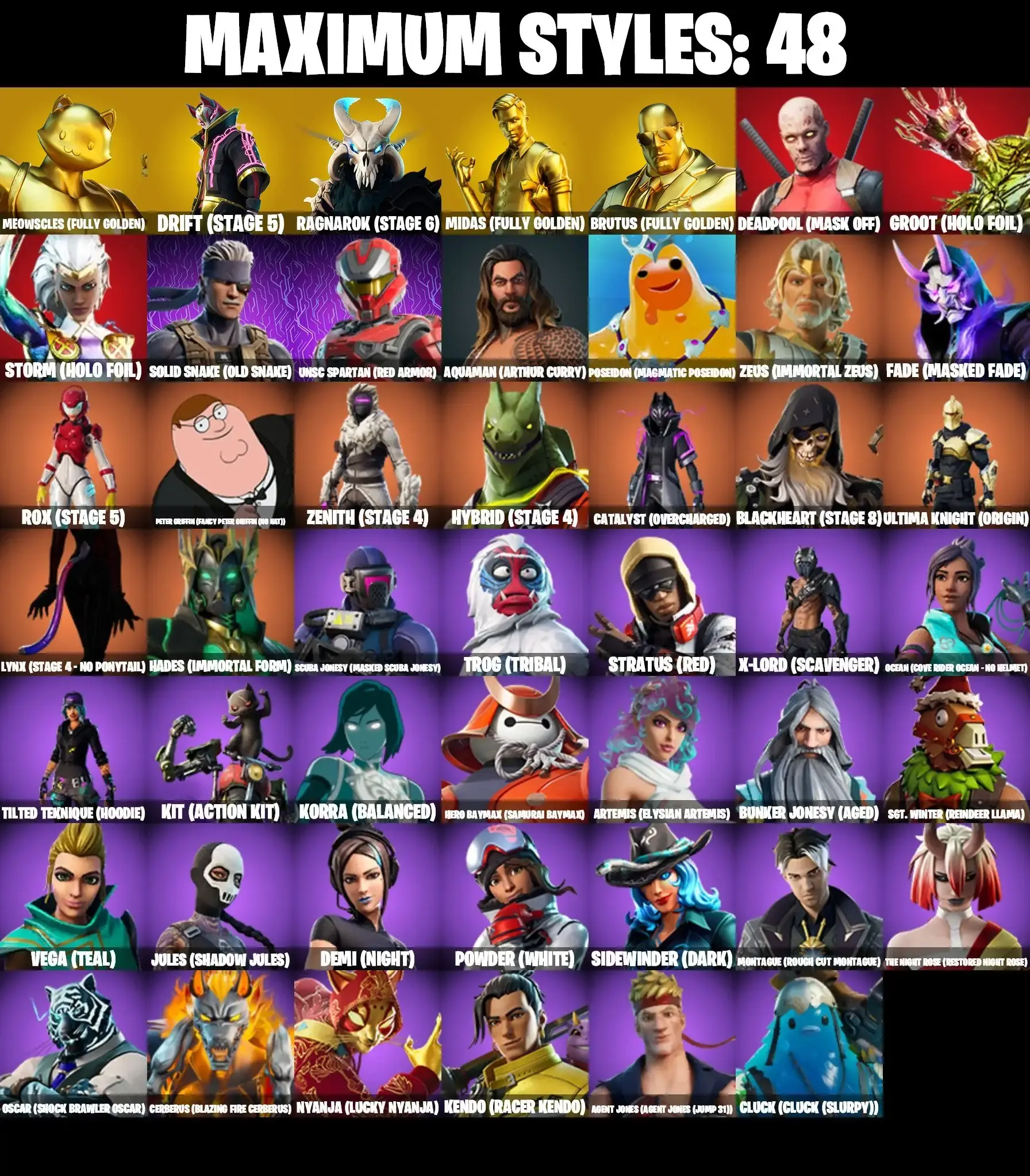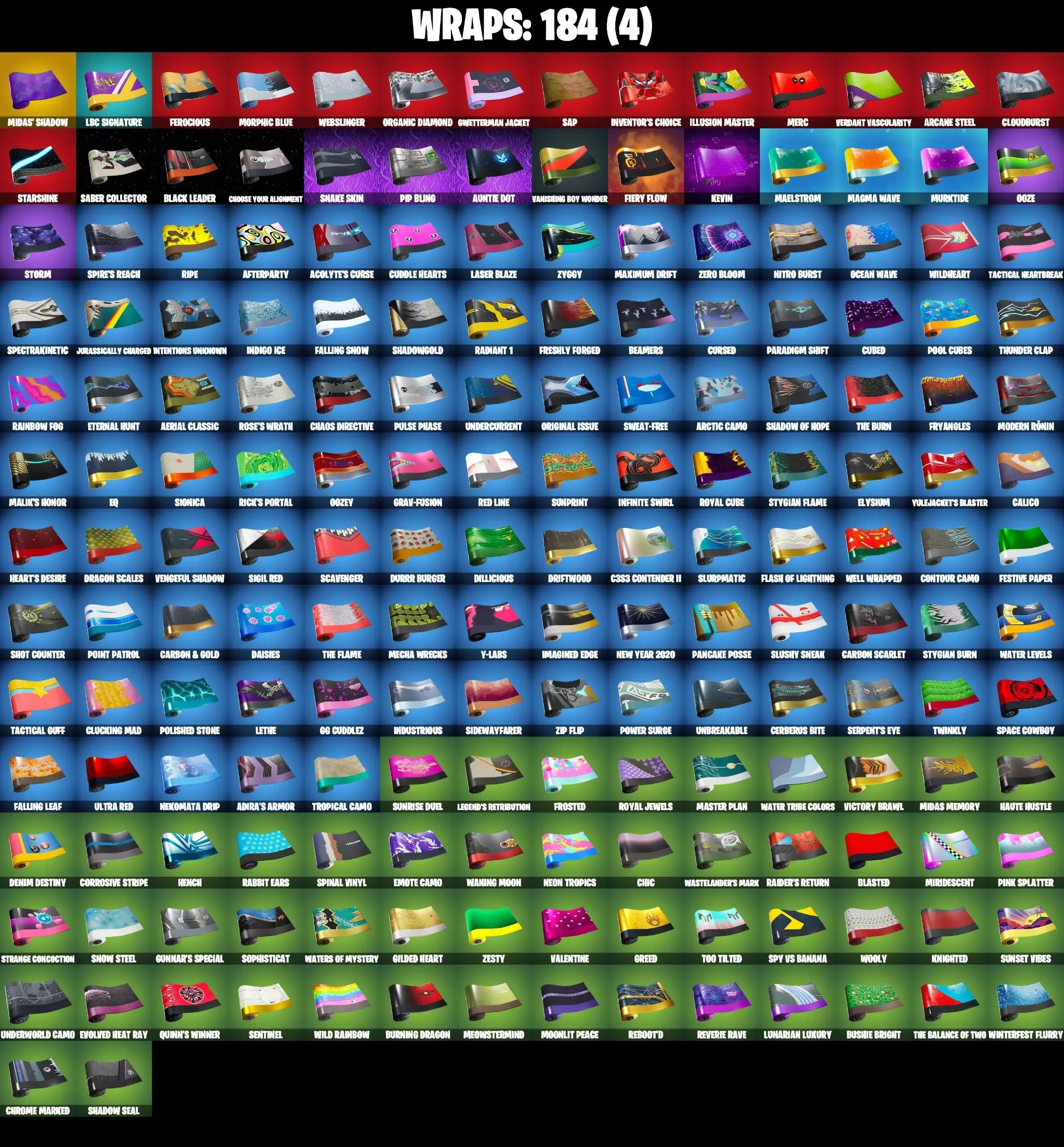 182 SKINS | GLOW | POLARITY | GHOUL TROOPER | HOLO FOIL STORM | HOLO FOIL GROOT | MANDALORIAN | WOOKIE TEAM LEADER | APPRENTICE EVIE | POE DAMERON | GENERAL GRIEVOUS | GOLDEN MIDAS | WIDNMILL FLOSS | PREDATOR | CATALYST MAX | ARTE
