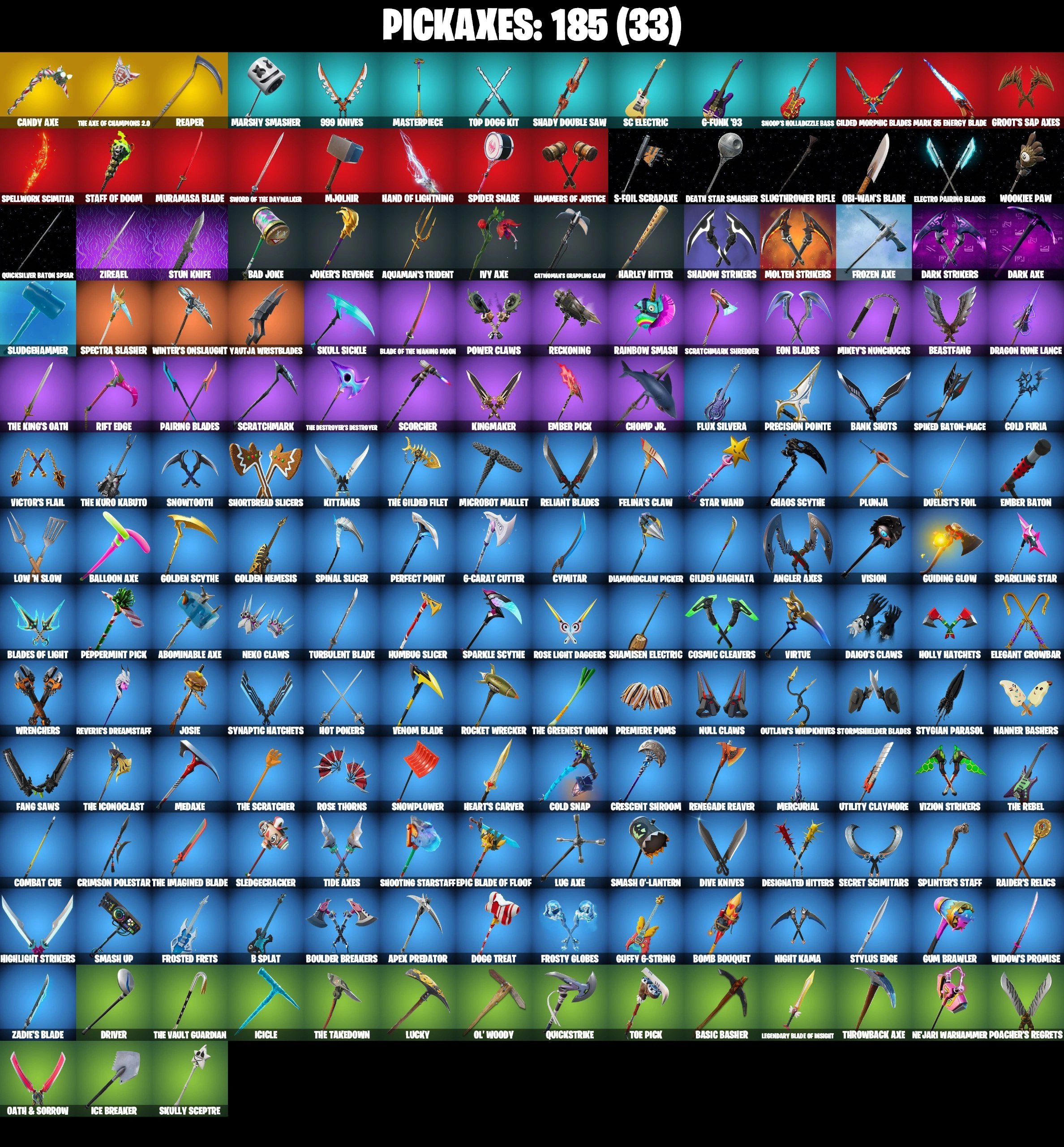 183 SKINS | THE AXE OF CHAMPIONS 2.0 | FULL BESKAR MANDALORIAN | CATWOMAN COMIC BOOK OUTFIT | POLARITY | HOLO FOIL STORM | HOLO FOIL GROOT | SKULL TROOPER | GHOUL TROOPER | NEO VERSA | CIRI | OBI-WAN KENOBI | POISON IVY | ORANGE J