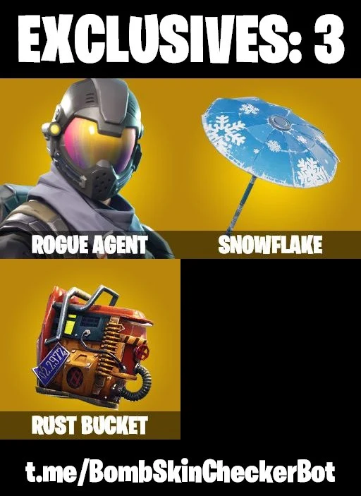 ✅2 Skins✅ Rogue Agent , Rust Bucket , Snowflake , Flappy
