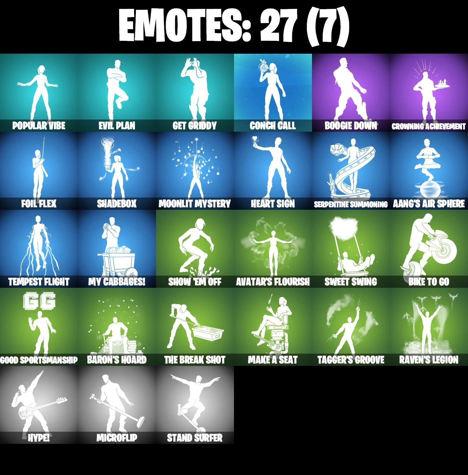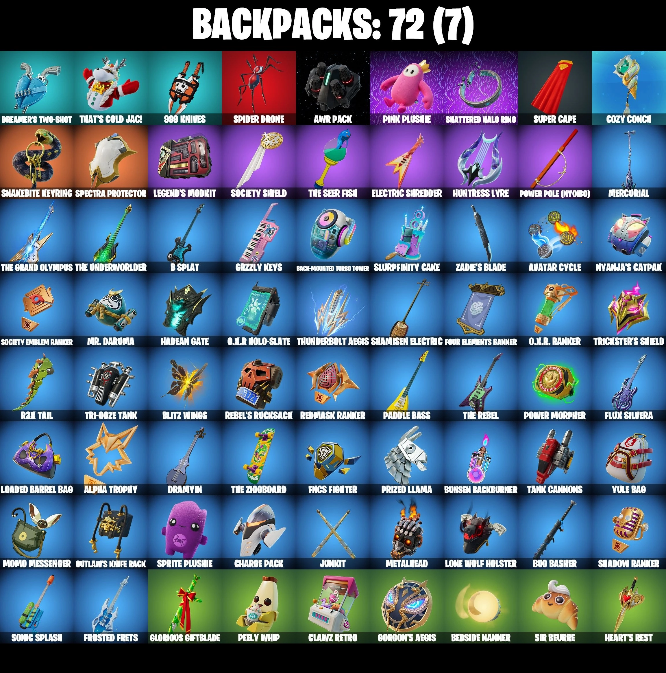 20 SKINS ⸱ AVATAR STATE AANG ⸱ BEERUS ⸱ SPIDER-MAN ZERO ⸱ BUG PUNK SUNNY ⸱ SON GOKU ⸱ MYSTERY ZONE ⸱ ZEUS ⸱ UNSC SPARTAN ⸱ SANTA DOGG ⸱ KORRA ⸱ CERBERUS ⸱ GET GRIDDY ⸱ CONCH CALL ⸱ POPULAR VIBE ⸱ HEART SIGN ⸱ POSEIDON