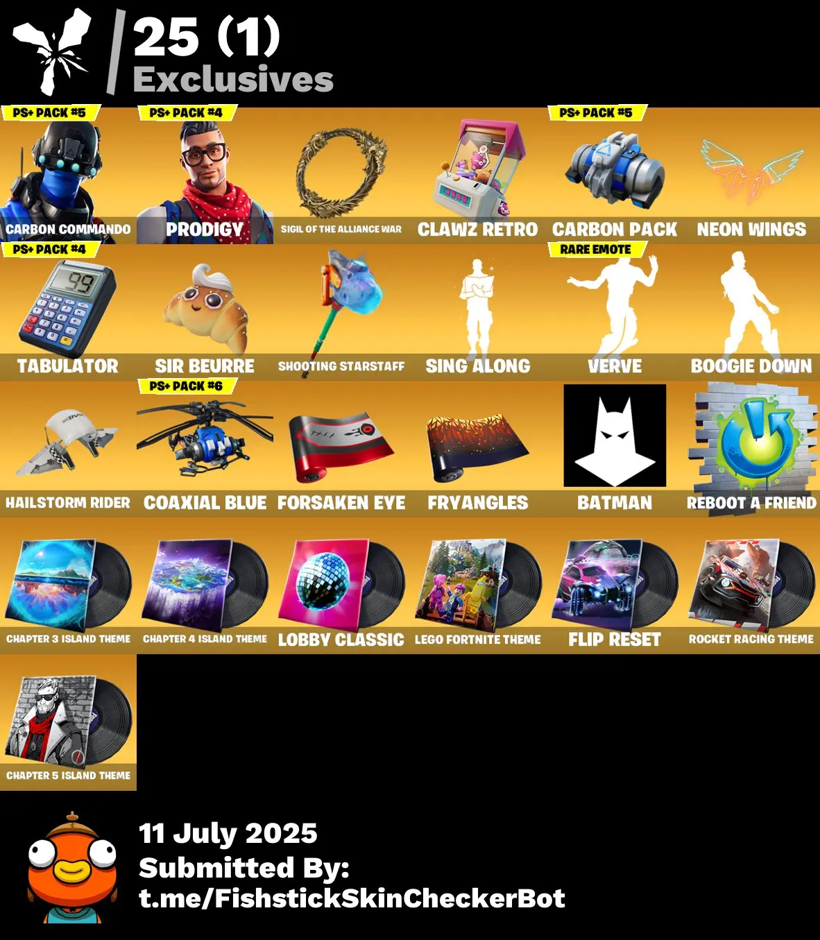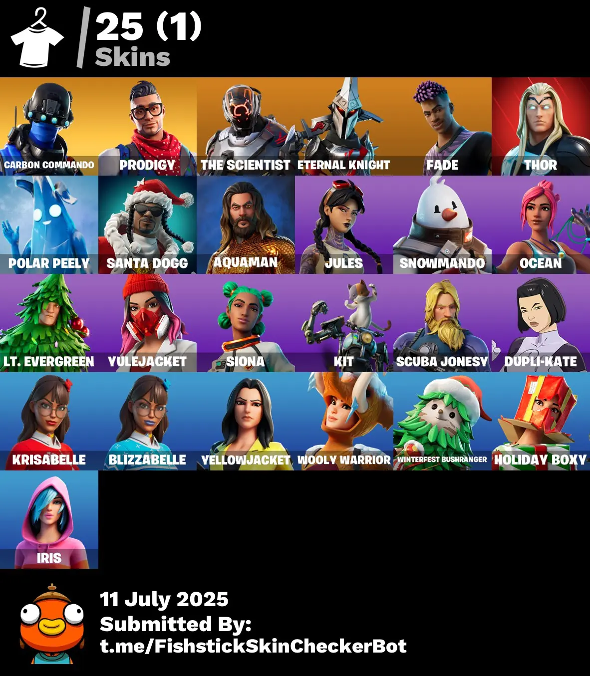 🦊 25 Skins [PC/PSN/XBOX] ⚙️ Carbon Commando 💻 Prodigy 🔬 The Scientist 🛡️ Eternal Knight 🌫️ Fade ⚡ Thor 🎅 Santa Dogg 🌊 Aquaman 🪄 FTN79