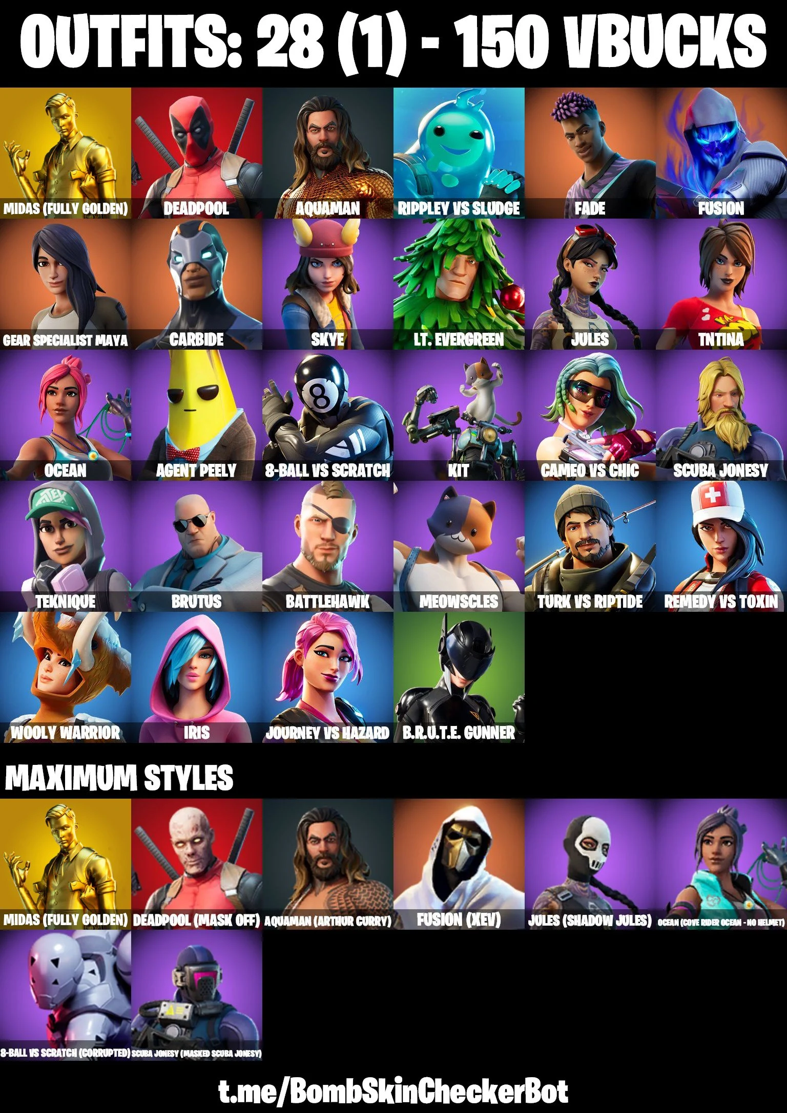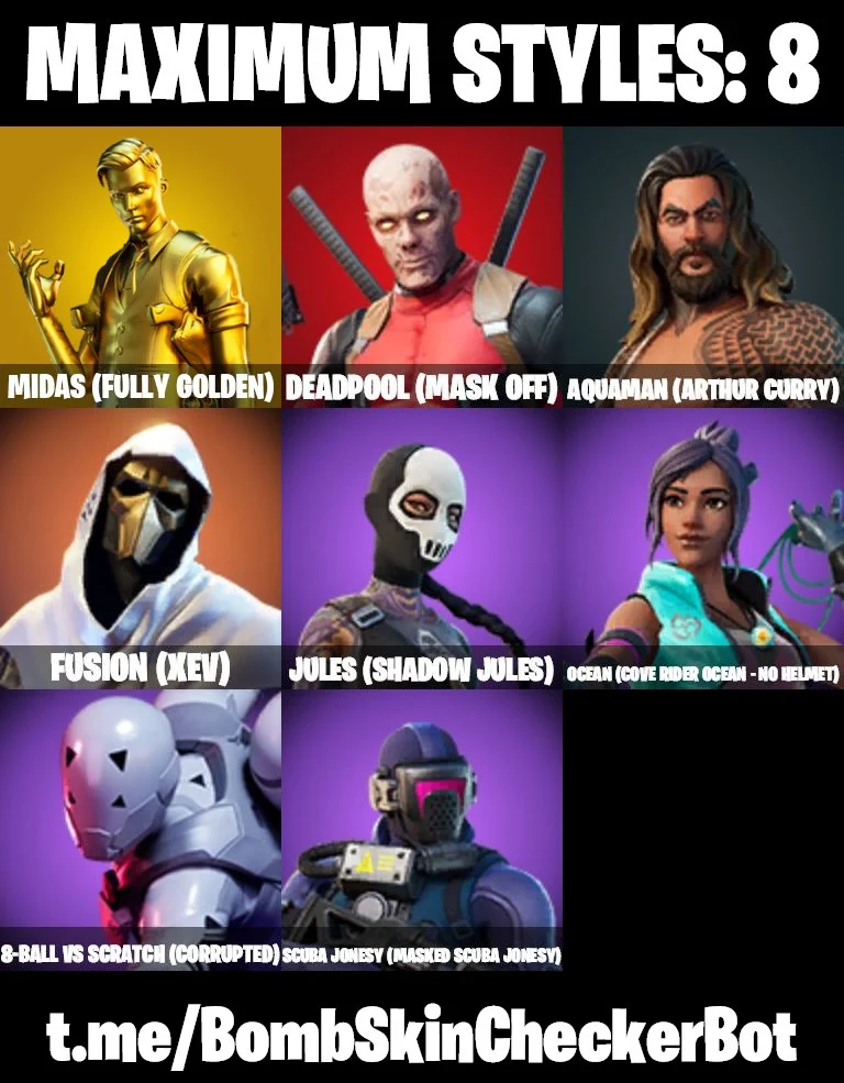 🔮28 Skins🔮 Rage💎Midas (Fully Golden)💎Take The Elf💎Rust Bucket💎Orange Justice💎Jules💎Ocean💎Fusion