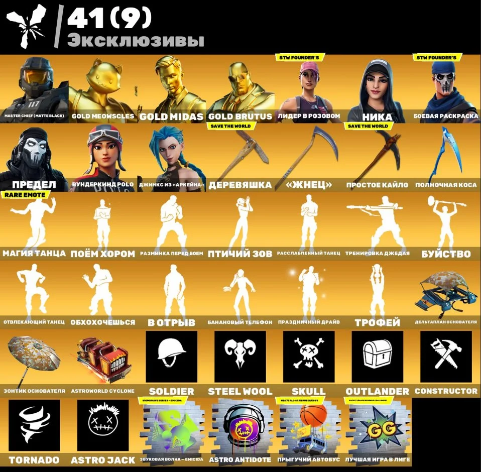 344 skins-OG STW PVE-Polo Prodigy-Arcane Jinx-Grind-2 Customs-Harley-Lara Croft