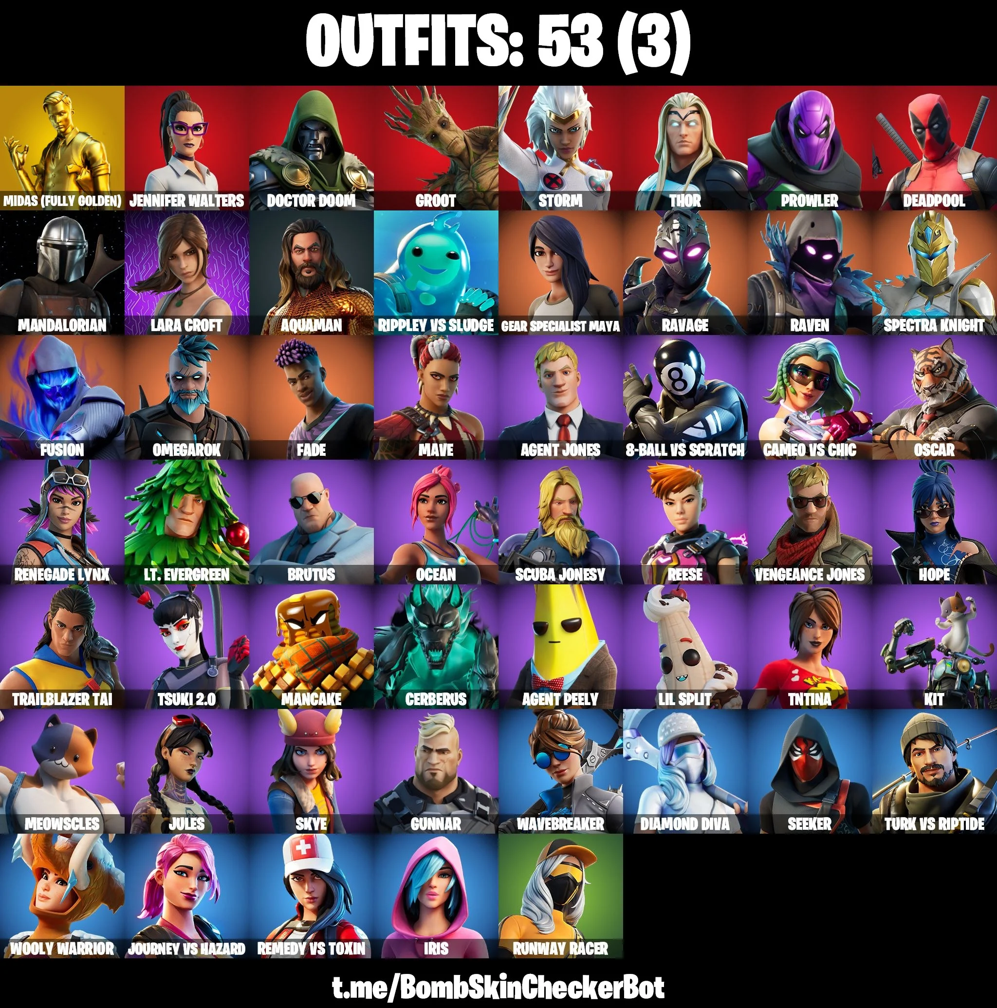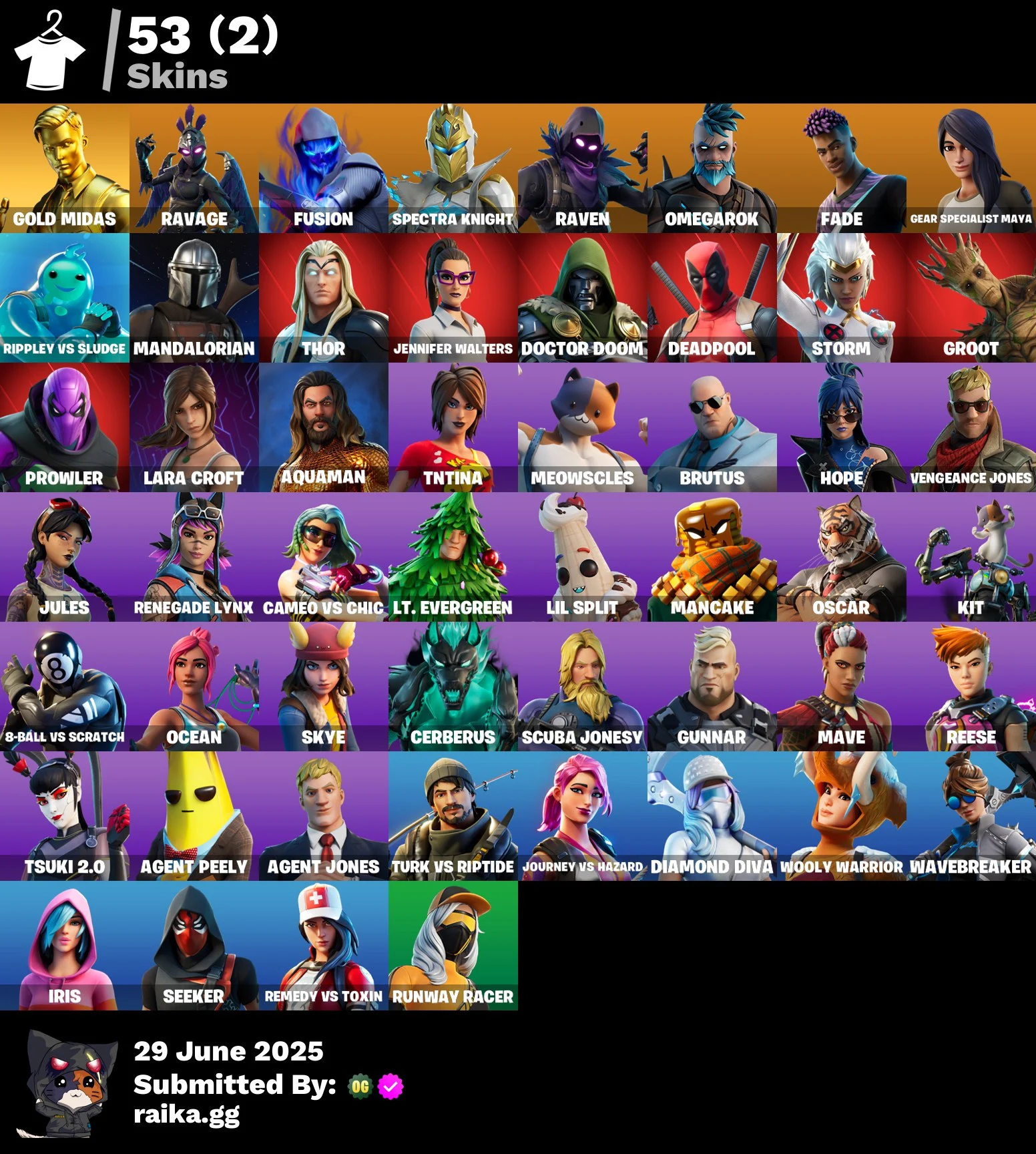 53 skins | Gold Midas | Ravage | Fusion | Spectra Knight | Raven | Omegarok | Fade | Gear Specialist Maya | Rippley vs Sludge | Mandalorian | Nai@1