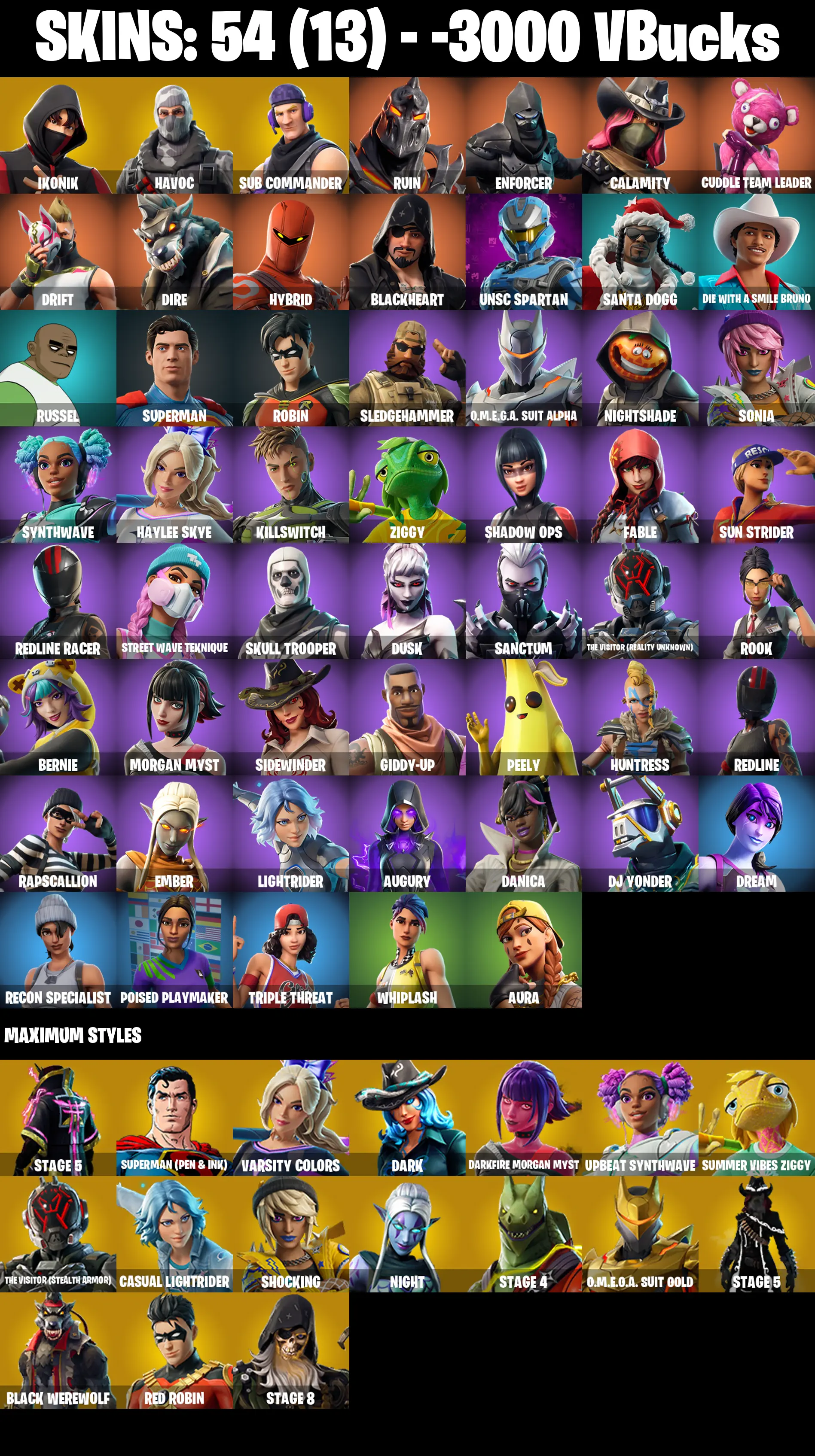 [54 SKINS] 🍀 IKONIK 🍀 Havoc 🍀 Sub Commander 🍀 Ruin 🍀 Enforcer 🍀 Calamity 🍀 Cuddle Team Leader 🍀 Drift 🍀 Dire 🍀 Hybrid 🍀 PARENTAL CONTROL 🍀 (PC/PSN/XBOX)