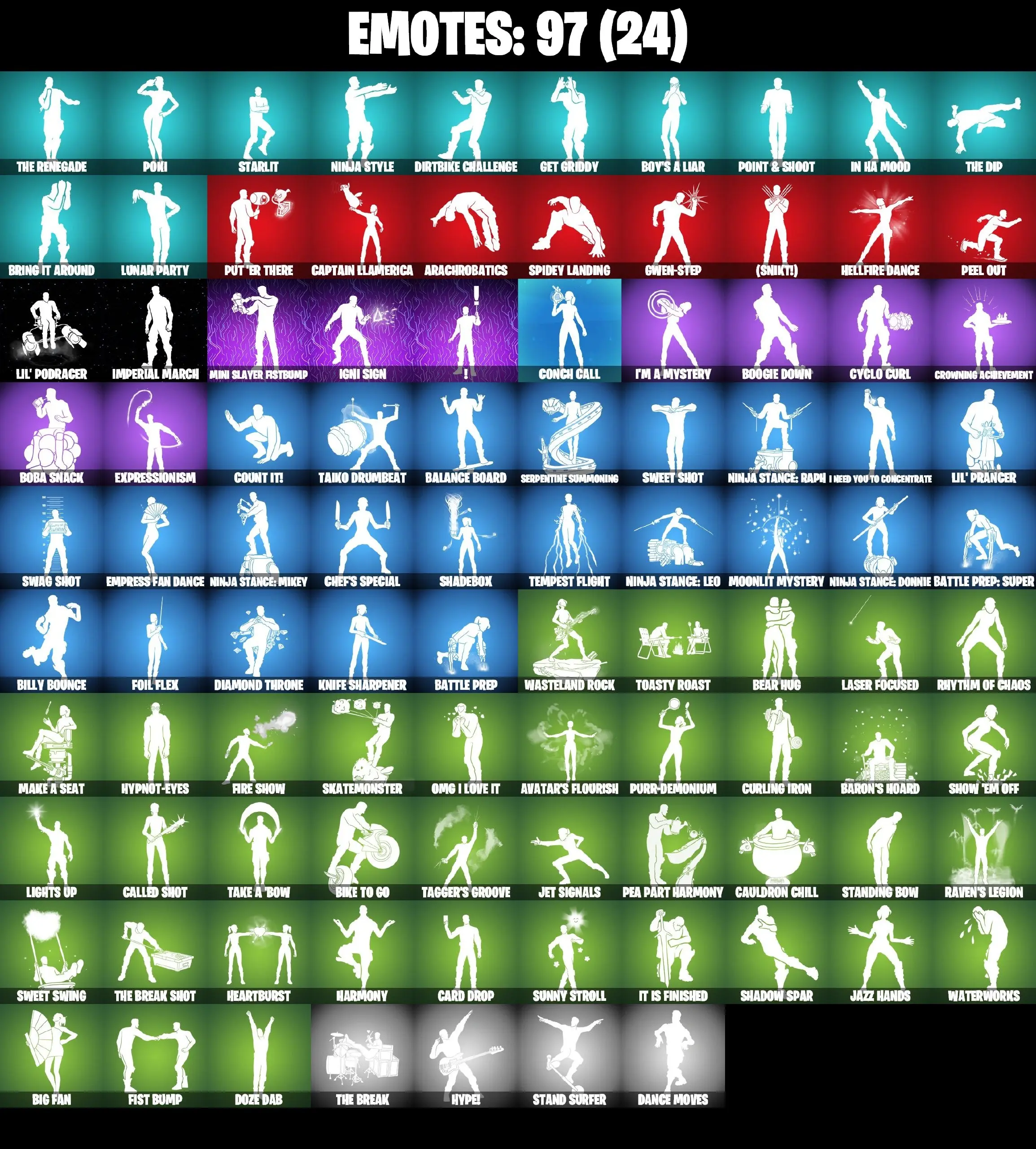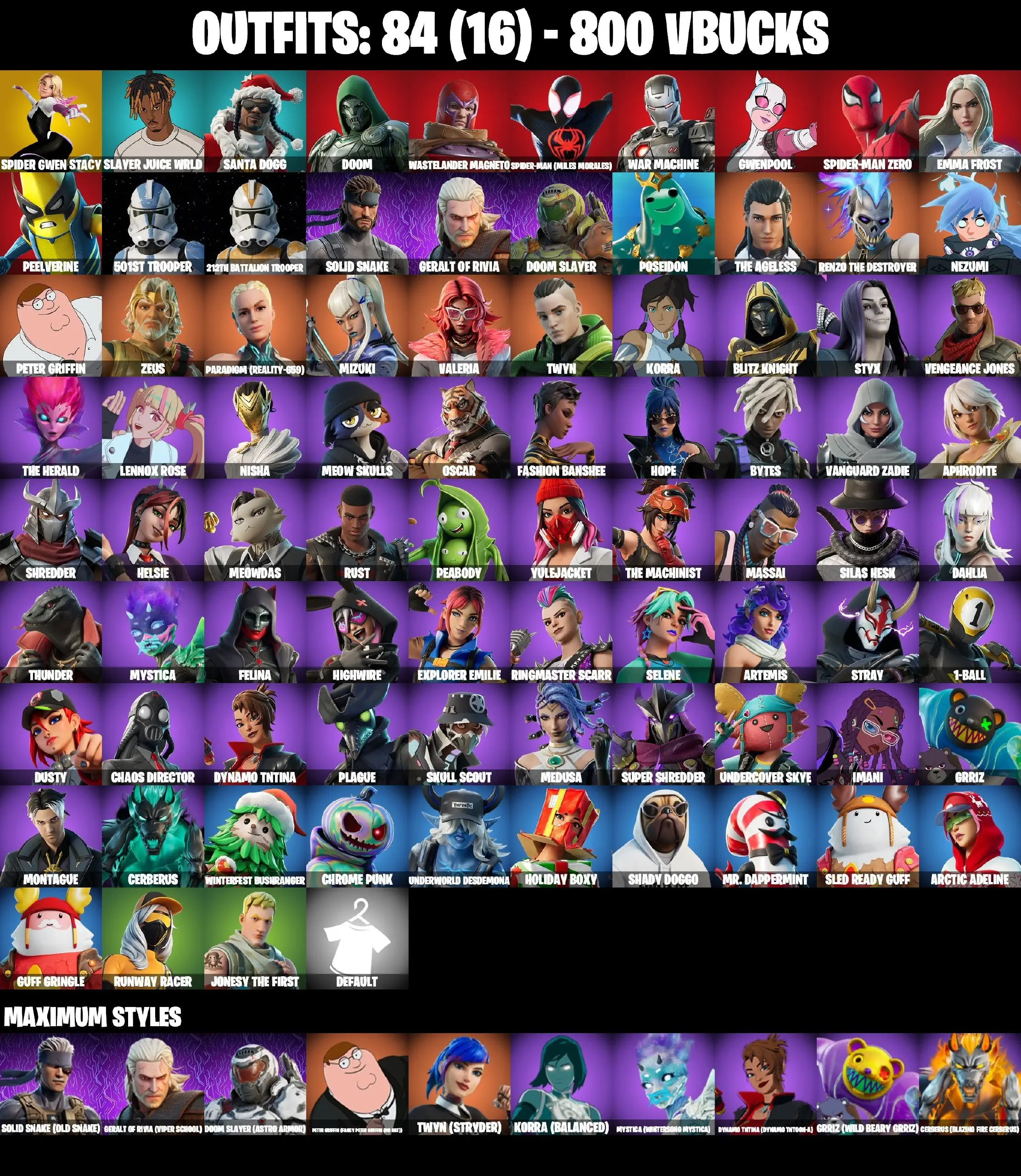 84 SKINS | FASHION BANSHEE | SHADY DOGGO | SPIDER-MAN MILES MORALES | SPIDER-MAN ZERO | SPIDER-GWEN STACY | 501ST TROOPER | 212TH BATTALION TROOPER | GET GRIDDY | MYSTICA MAX | ARTEMIS | SKULL SCOUT | HELSIE | SILAS HESK | CAN PLA