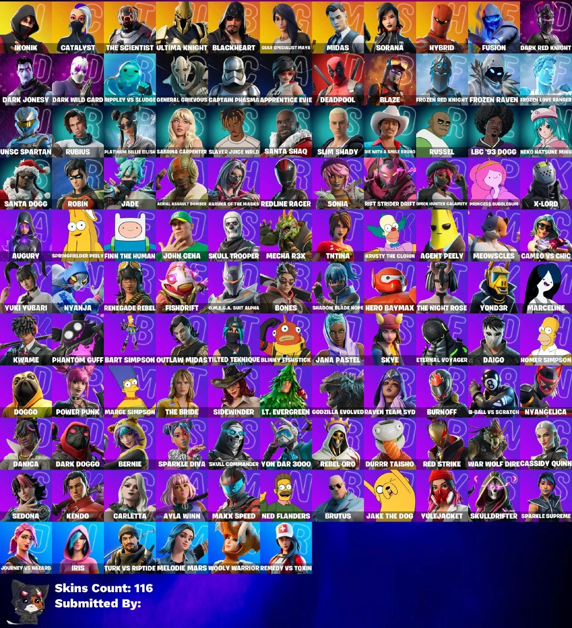 💥🌟 EXCLUSIVE OFFER 🌟💥 116 SKINS 💎 IKONIK 💎 Scenario 💎 The Scientist 💎 Ultima Knight 💎 Blackheart 💎 Gear Specialist Maya 💎 Midas 💎 Sorana 💎 Hybrid 💎 Fusion 💎 Dark Red Knight 💎 Dark Jonesy 💎 Dark Wild Card 💎 FULL ACCESS 💎