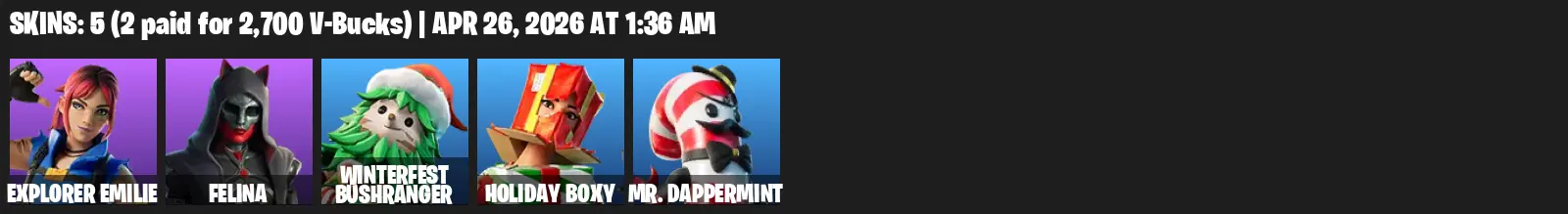 🔥 [PC] | 5 Skins | Explorer Emilie / Felina / Winterfest Bushranger / Holiday Boxy / Mr. Dappermint | Full Access