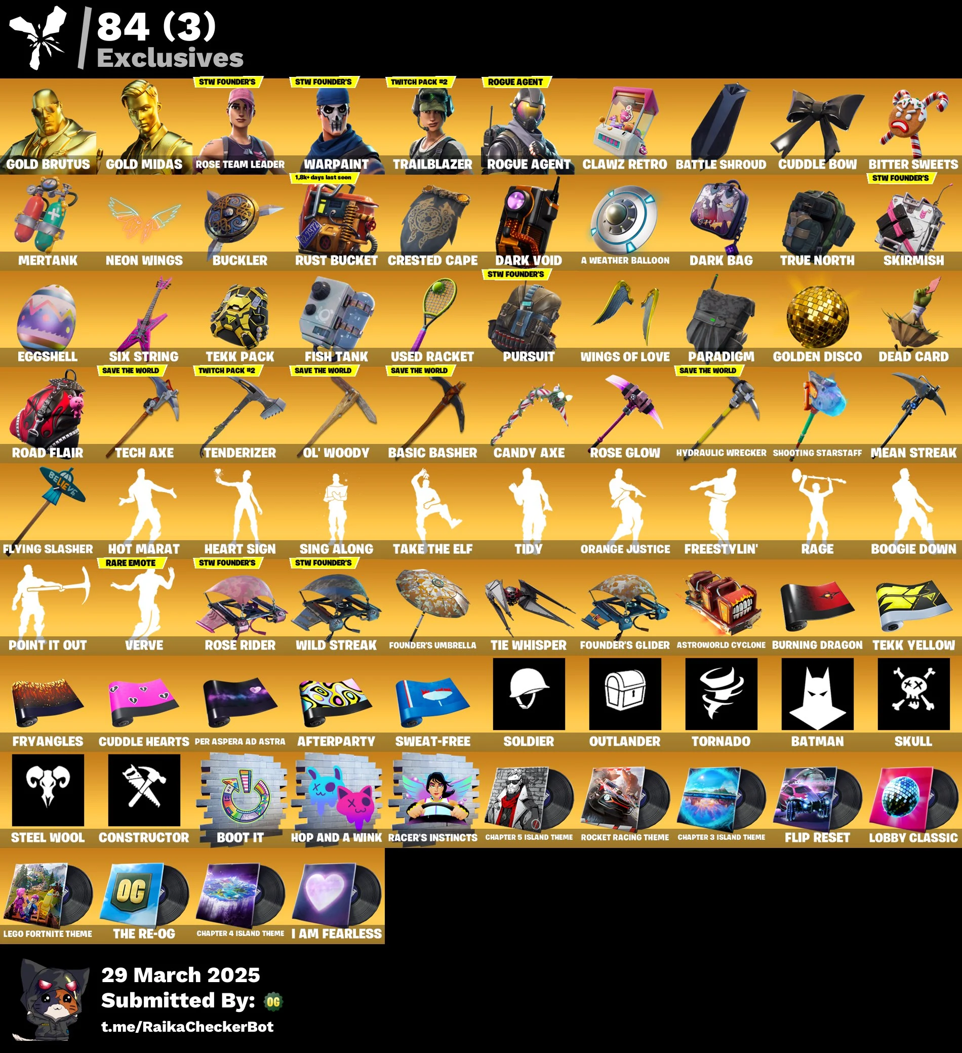 Gold Midas 💎 Trailblazer 🎧 Rogue Agent 🔫 Drift 🌀 Leviathan 🦑 OG STW 🌩️ | 171 Skins + 210 VB 💰