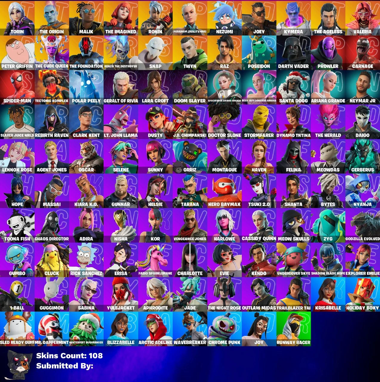 π₯π LIMITED OFFER ππ₯ 108 SKINS π TORIN π THE ORIGIN π MALIK π THE IMAGINED π RONIN π PARADIGM (REALITY-659) π NEZUMI π JOEY π KYMERA π THE AGELESS π VALERIA π PETER GRIFFIN π THE CUBE QUEEN π THE FOUNDATION π RENZO THE DESTROYER π 600 VB π FULL ACCESS π