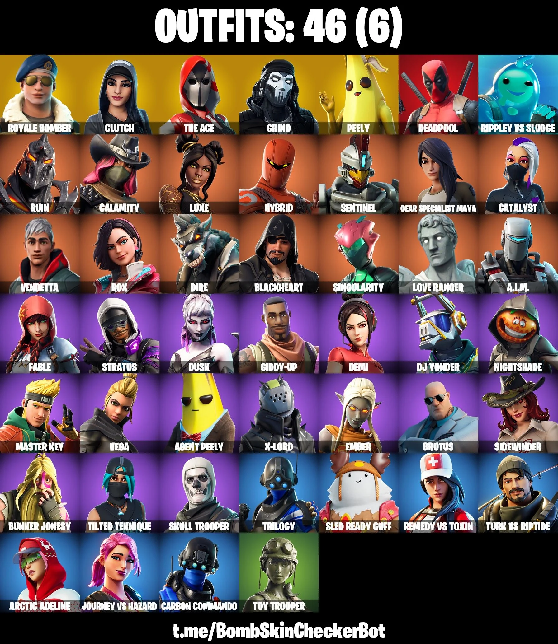 ๐ MAIL CHANGE ๐ [PC/PSN/XBOX] ๐ 46 SKINS ๐ ROYALE BOMBER ๐ SKULL TROOPER ๐ TRILOGY ๐ GRIND ๐ CALAMITY ๐ TAKE THE ELF โ