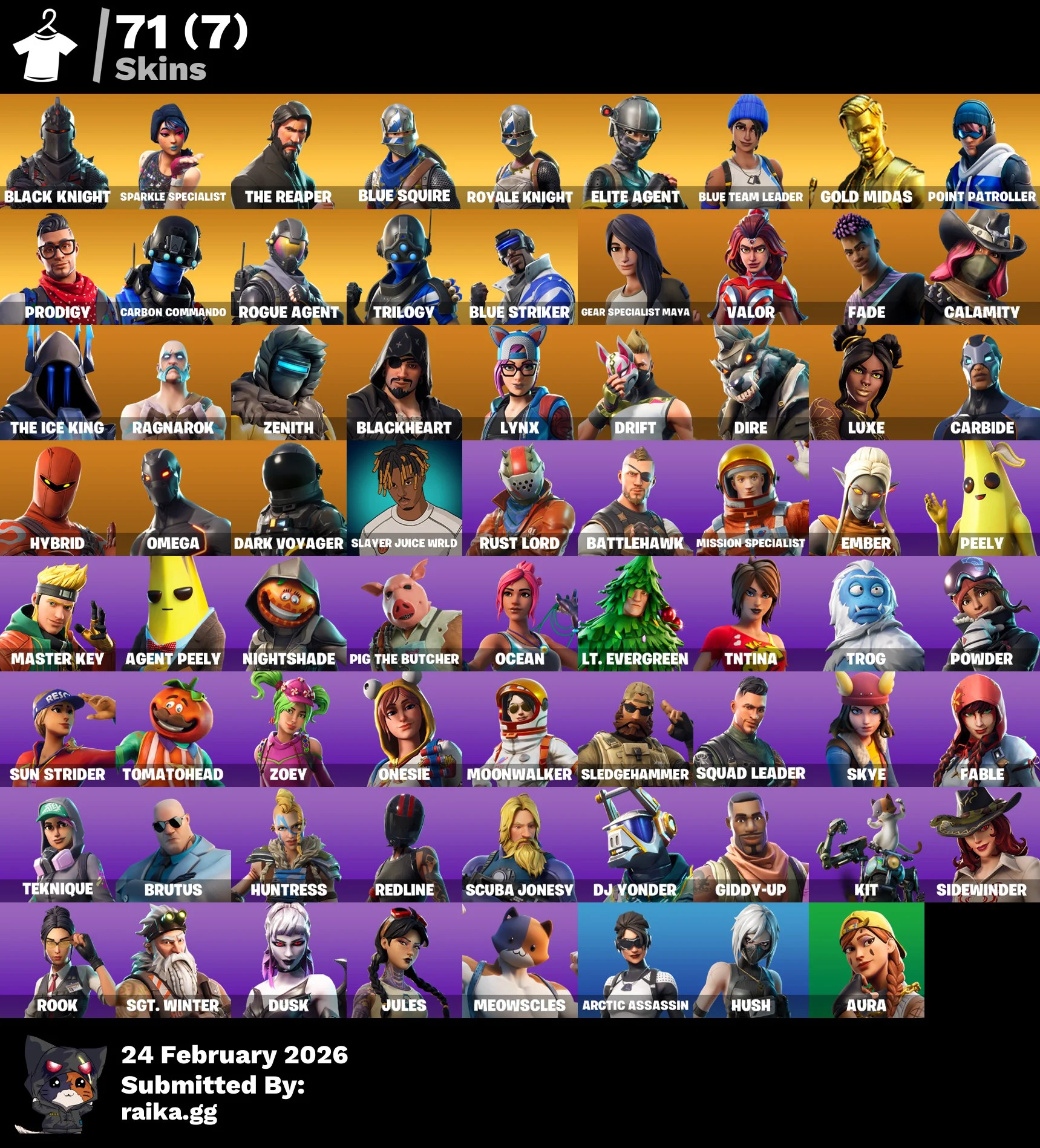 [PC] 71 skins | Black Knight | Sparkle Specialist | The Reaper | Blue Squire | Royale Knight | Elite Agent | Blue Team Leader | Gold Midas | 200 VB
