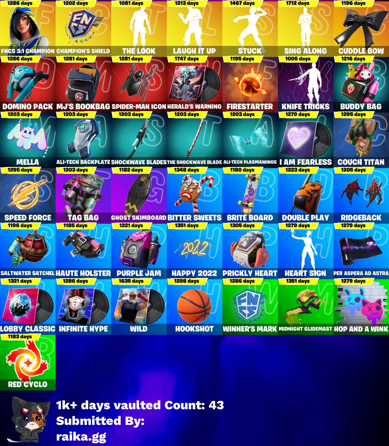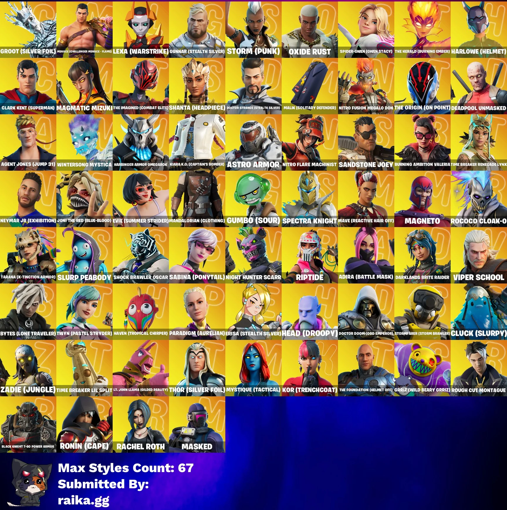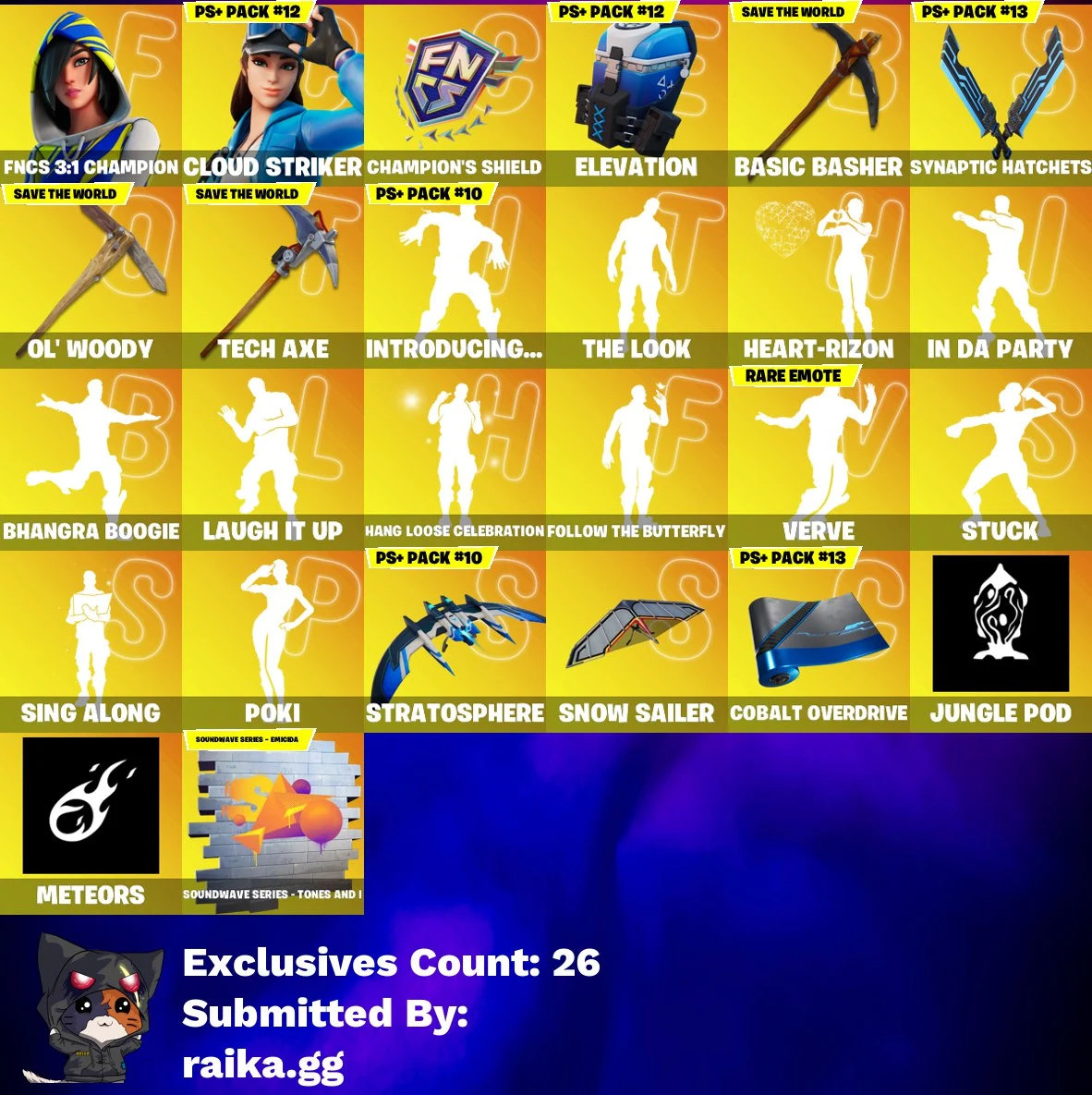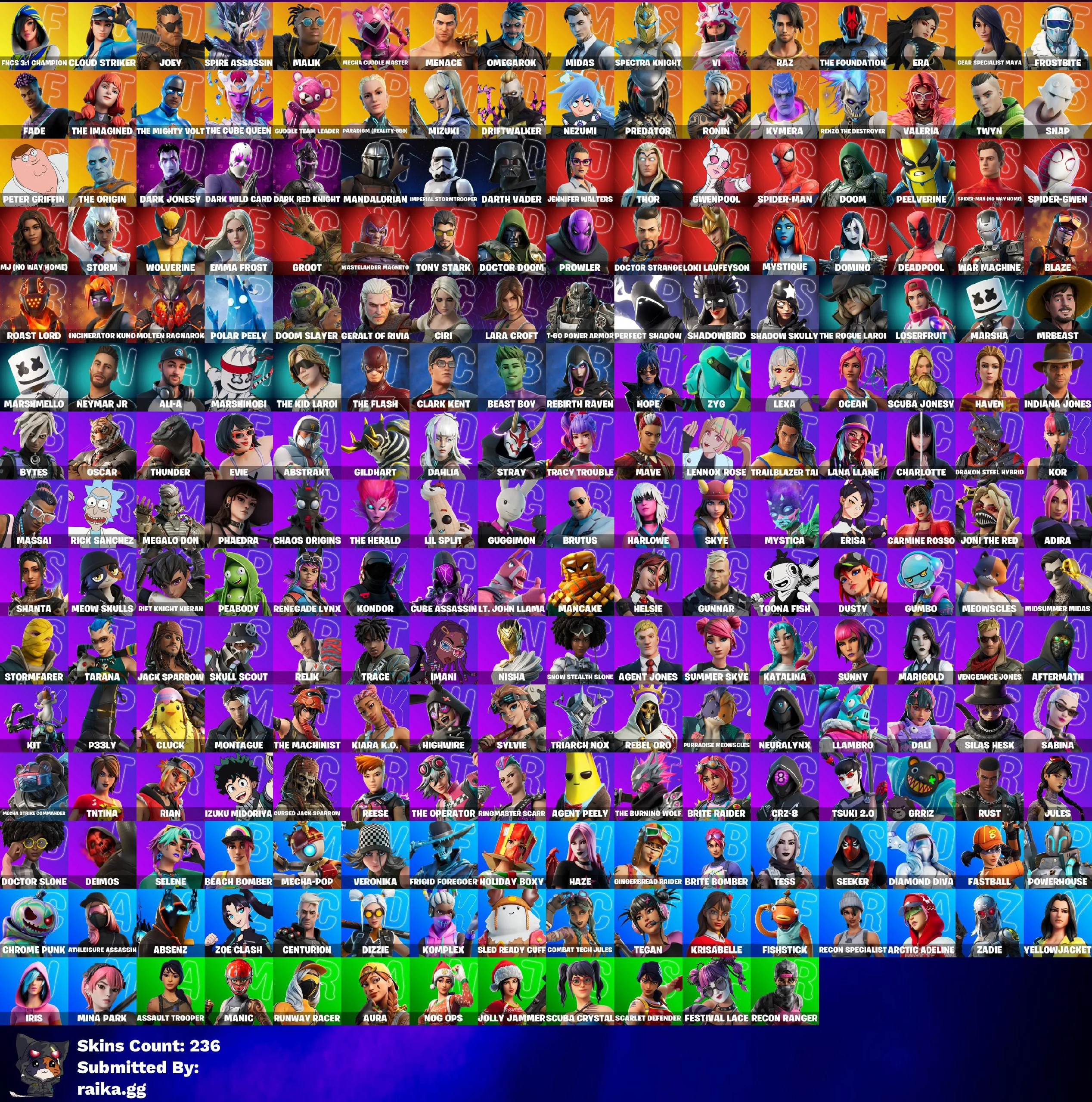 [PC / PSN /XBOX] 236 SKINS | FNCS 3:1 CHAMPION | CLOUD STRIKER | JOEY | SPIRE ASSASSIN | MALIK | MECHA CUDDLE MASTER | MENACE | OMEGAROK | MIDAS | 220 VB