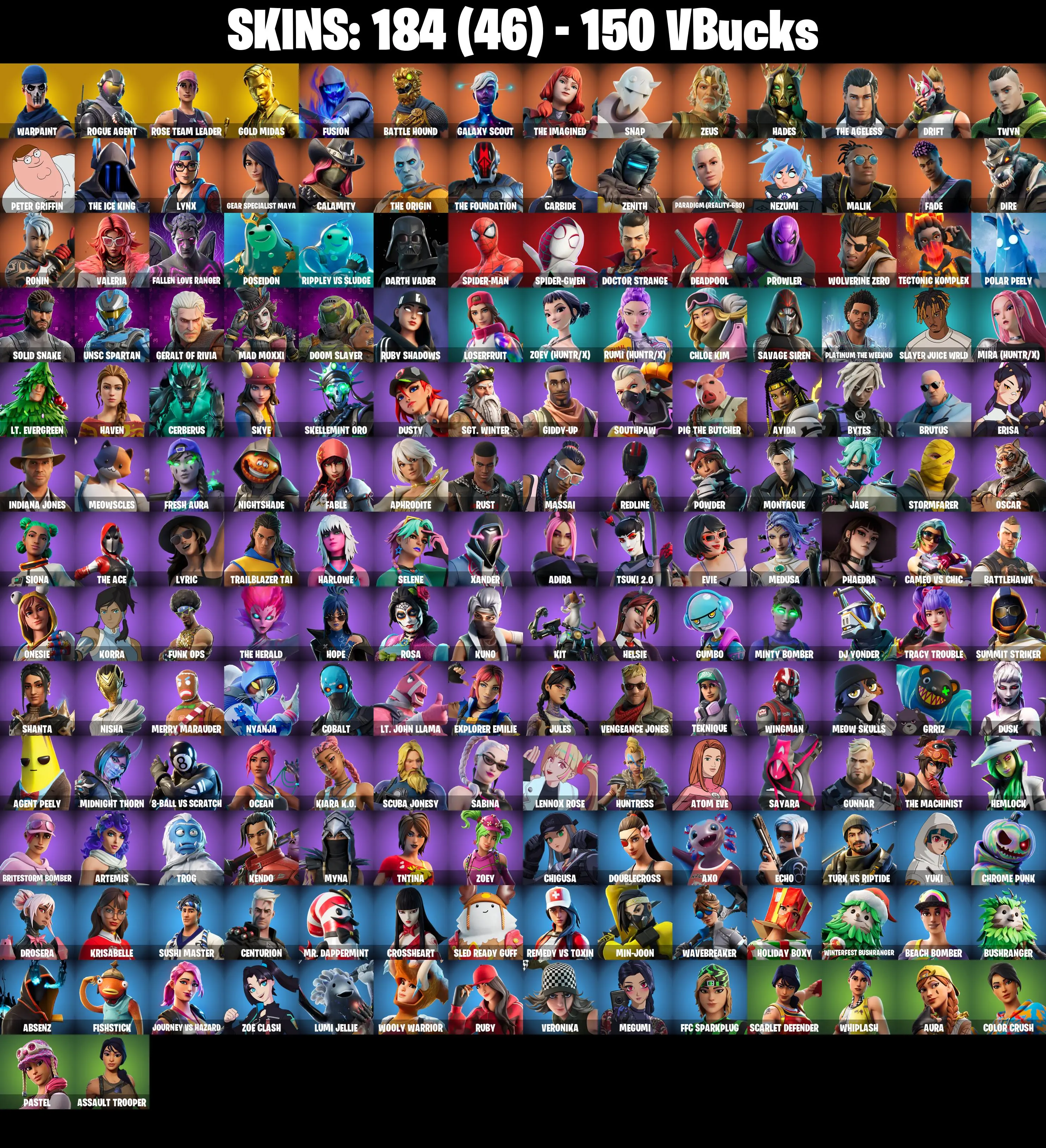 PC/PSN ♨️184 skins ✨ OG STW ✨ Deadpool ✨ Spider-Gwen ✨ Orange Justice ✨ Rogue Agent ✨ Drift ✨ Carbide ✨ Rage ✨ Dire ✨ The Ice King ✨ Fusion ✨ #B2435