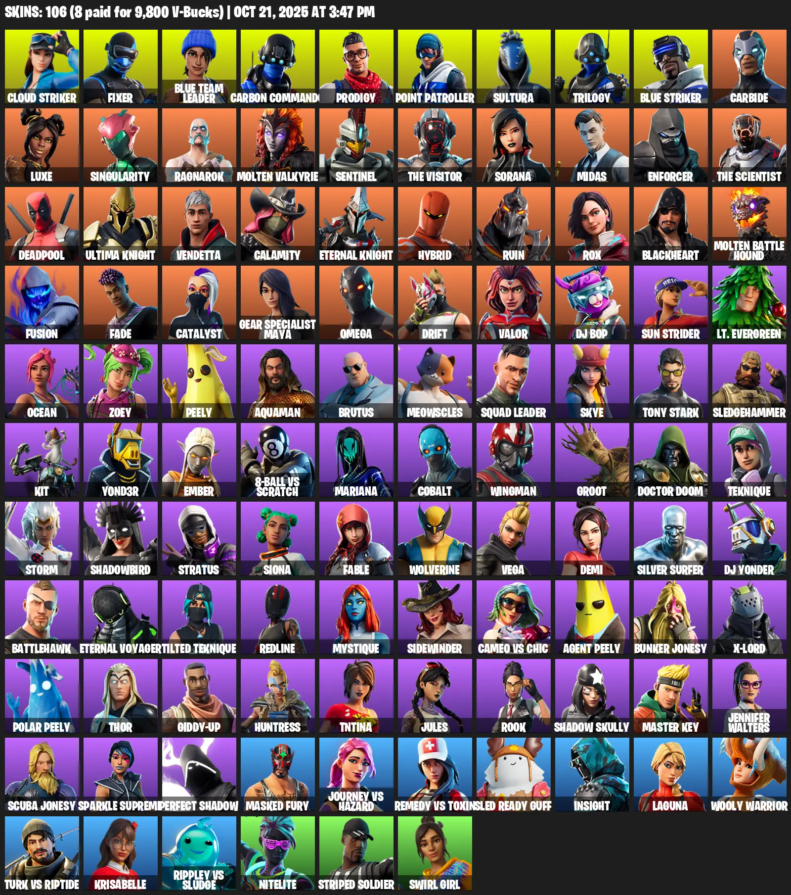 ๐จ [PC/PSN/XBOX] ๐ 106 skins | Ultima Knight , Vendetta , Calamity , Eternal Knight , Fusion , Omega , Drift , The Scientist , Midas | ๐ 600 VBUCKS | โ๏ธ Changeable Email Now