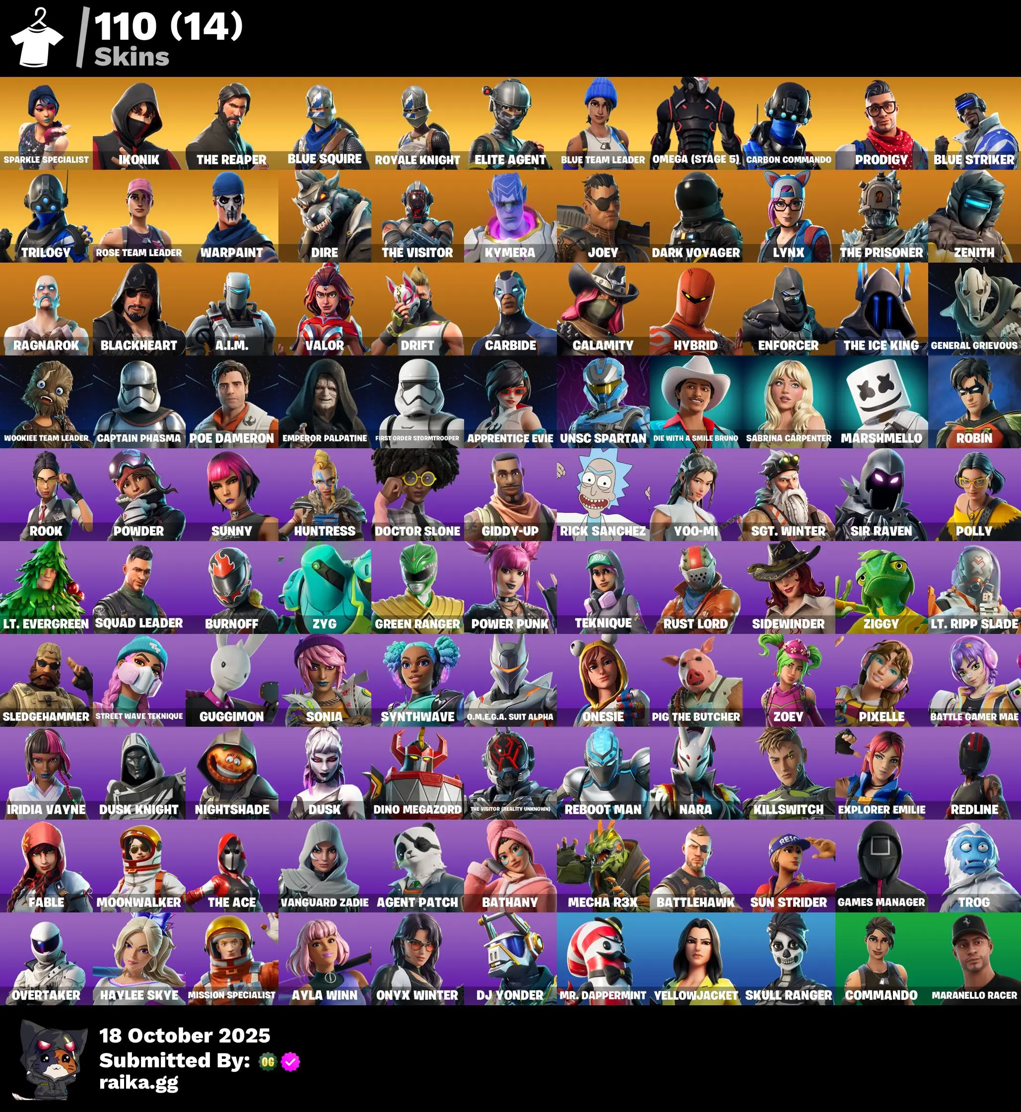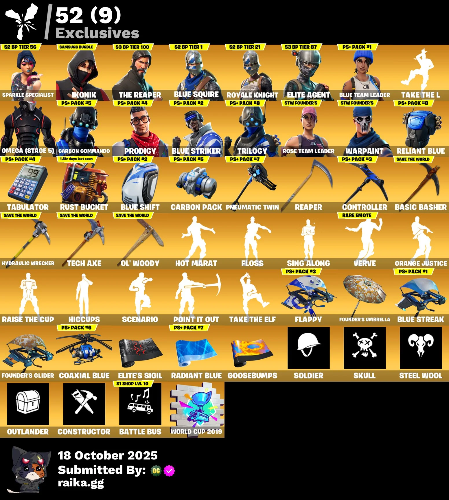 [PC/PSN/XBOX] 110 skins | OG STW | Sparkle Specialist | IKONIK | The Reaper | Blue Squire | Royale Knight | Elite Agent | Blue Team Leader | Omega (stage 5) | 2200 VB