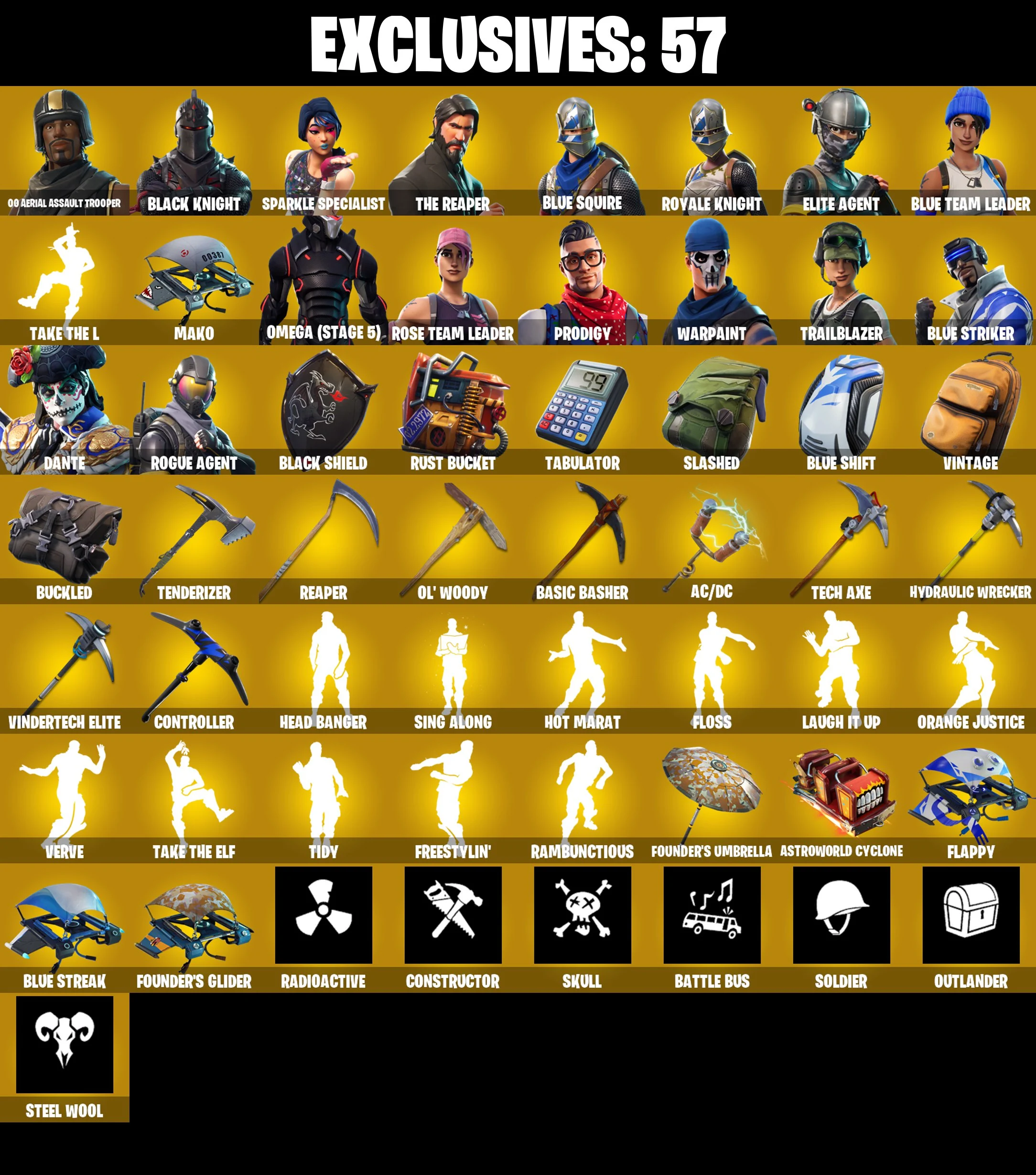 [PC/PSN/XBOX] 118 Skins | OG Aerial Assault Trooper + Black Knight | Email Changeable | Sparkle Specialist | The Reaper | Blue Squire | Royale Knight | Elite Agent | OG STW