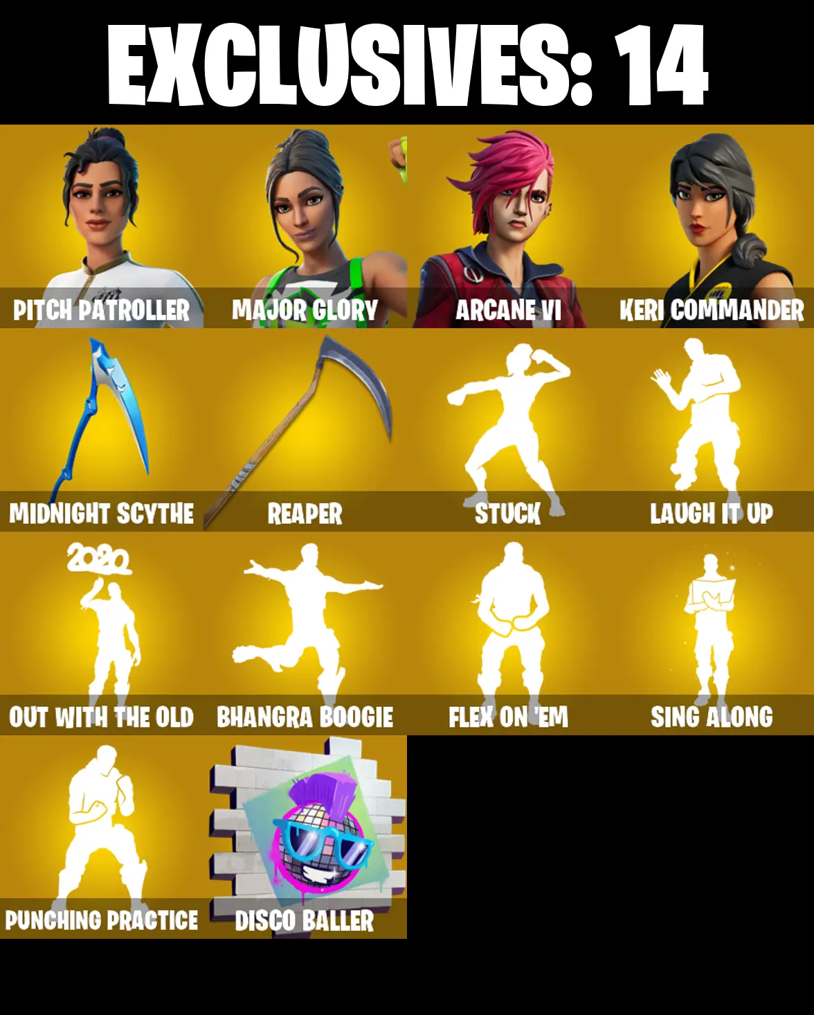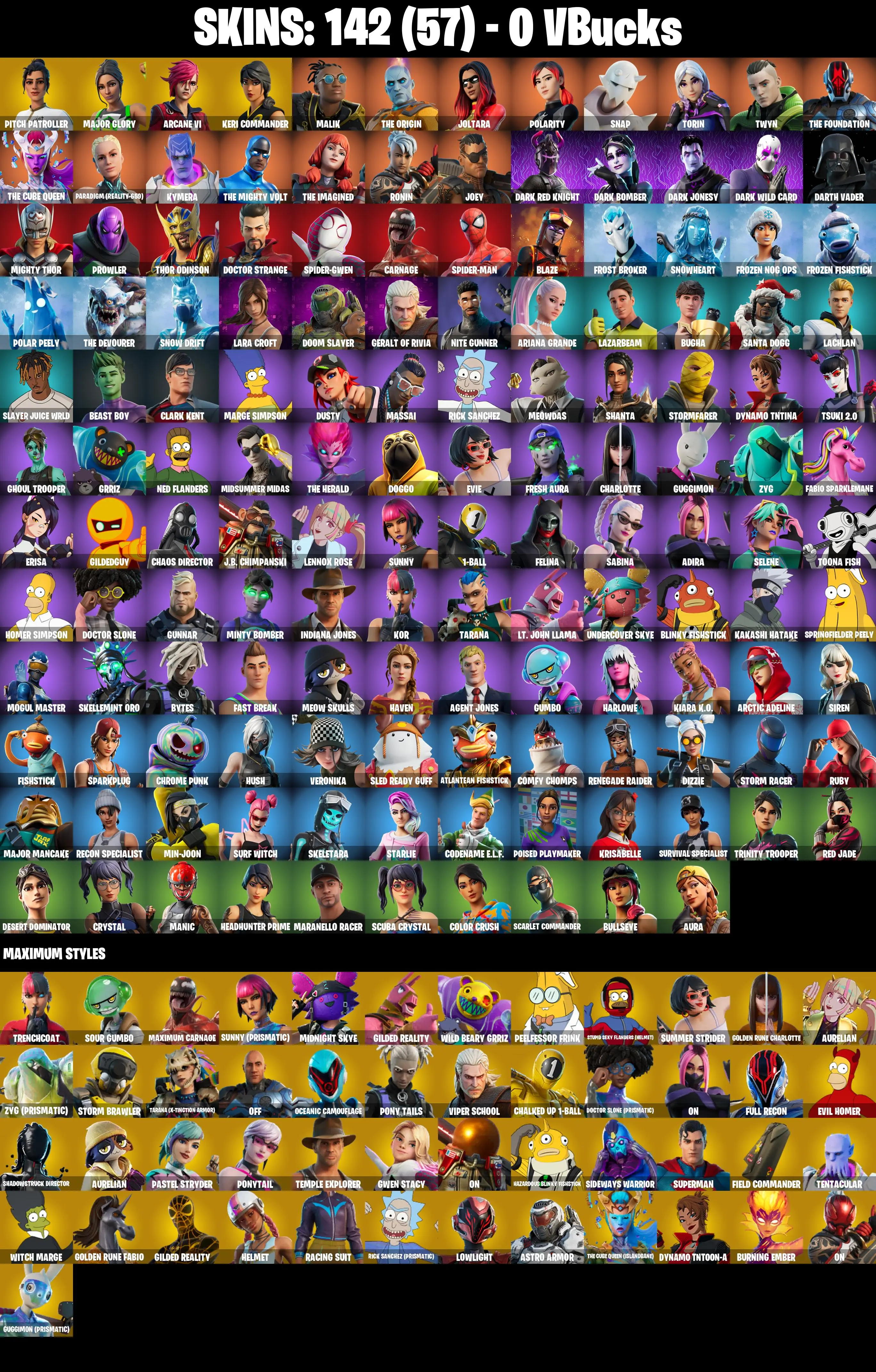 (PC/PSN/XBOX) 142 SKINS 💫 Renegade Raider ⚡️ Pitch Patroller 💍 Major Glory ⚡️ Arcane Vi 💍 Keri Commander ⚡️ Malik 💍 The Origin | 0 V-Buck | PARENTAL CONTROLS