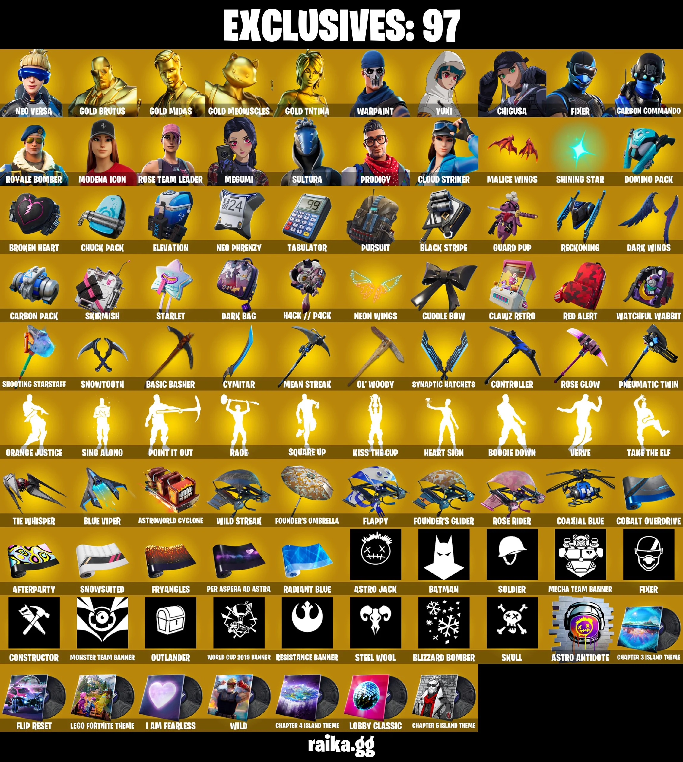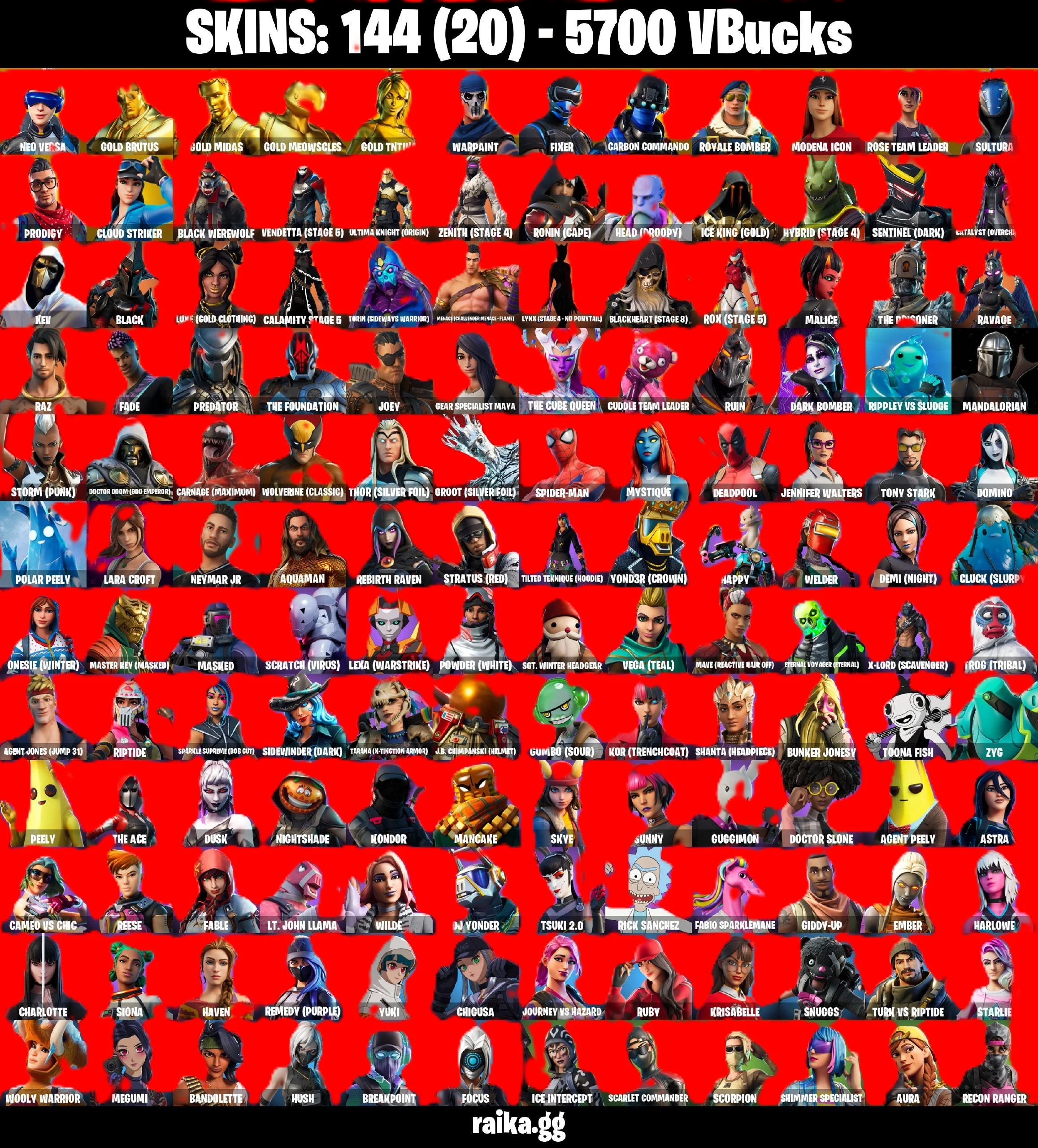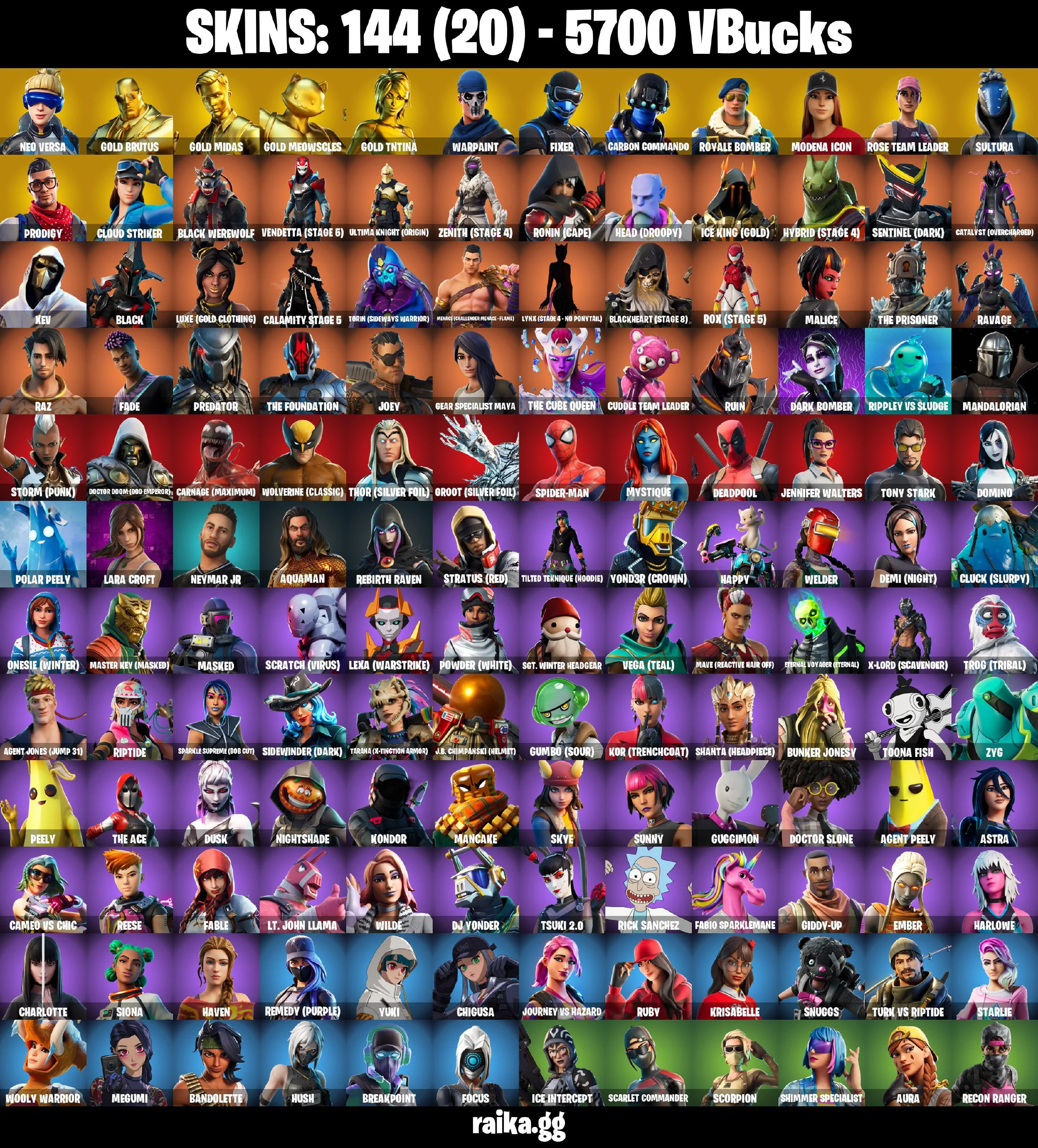 ⭐[PC/PSN/XBOX] 144 skins | 5700 vbuck  | OG STW | Neo Versa | Gold Brutus | Gold Midas | Gold Meowscles | Gold TNTina | Fixer | Carbon Commando | Royale Bomber | Modena Icon | 5700 VB