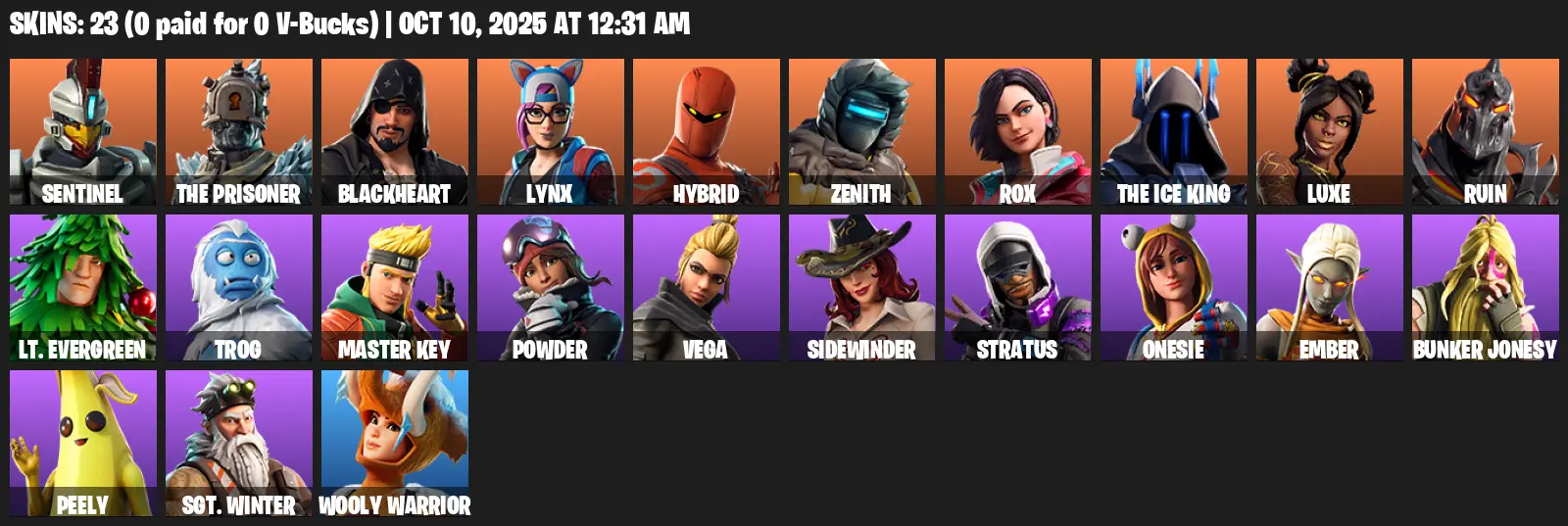 [PC/PSN/XBOX] | 23 skins | 1300 V-bucks | Sentinel | The Prisoner | Blackheart | Lynx | Hybrid | Zenith | Rox | The Ice King | Luxe | #OYQ7836 | #MBFN