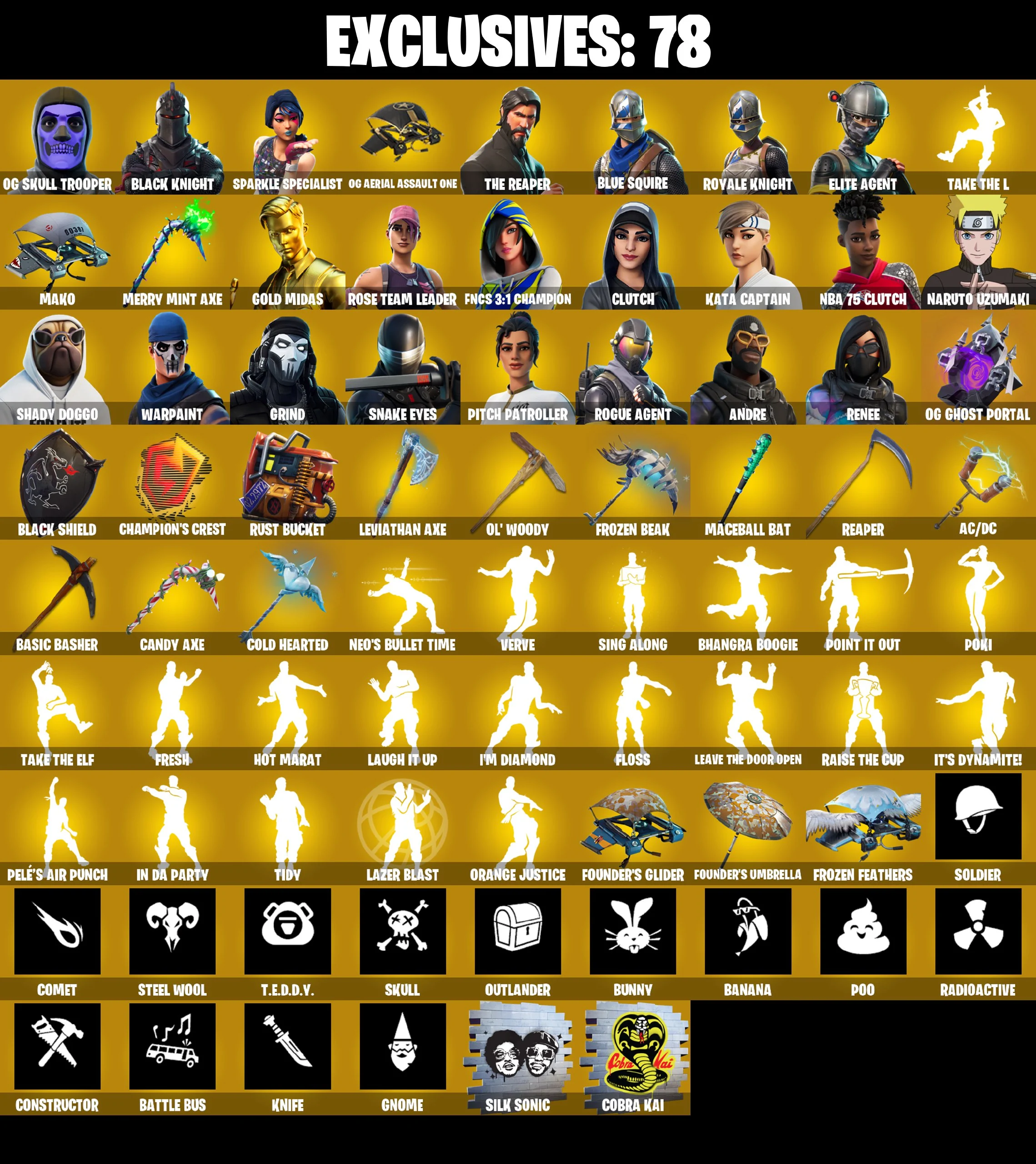 [PC/PSN/XBOX] 413 Skins | OG Skull Trooper (Purple Skull Trooper) | Black Knight | OG Aerail Assault One | Merry Mint Axe | The Reaper | OG STW