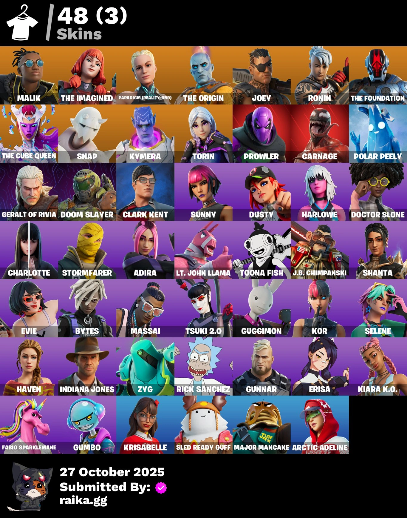 [PC/PSN/XBOX] 48 skins | Malik | The Imagined | Paradigm (Reality-659) | The Origin | Joey | Ronin | The Foundation | The Cube Queen | Snap | Kymera | Torin | 1150 VB