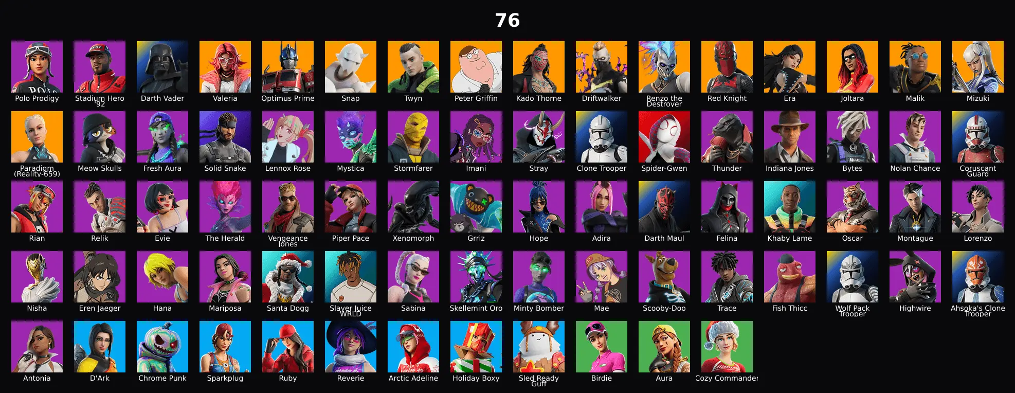 PC,PSN,XBOX 76 SKINS FA ⸱ POLO PRODIGY ⸱ DARTH VADER ⸱ STADIUM HERO ⸱ JOLTARA,SPIDER-GWEN,DARTH MAUL,AURA RK1954