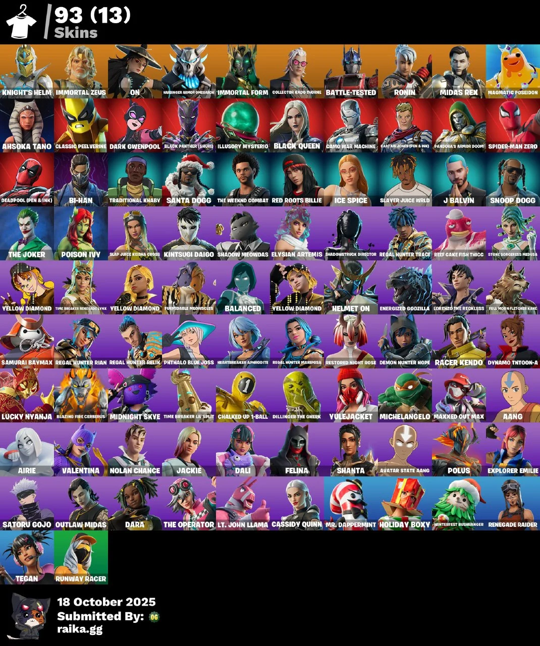 [PC/PSN/XBOX] 93 skins | Poison Ivy | The Joker | Get Griddy | J Balvin | Renegade Raider | Knight's Helm lai488