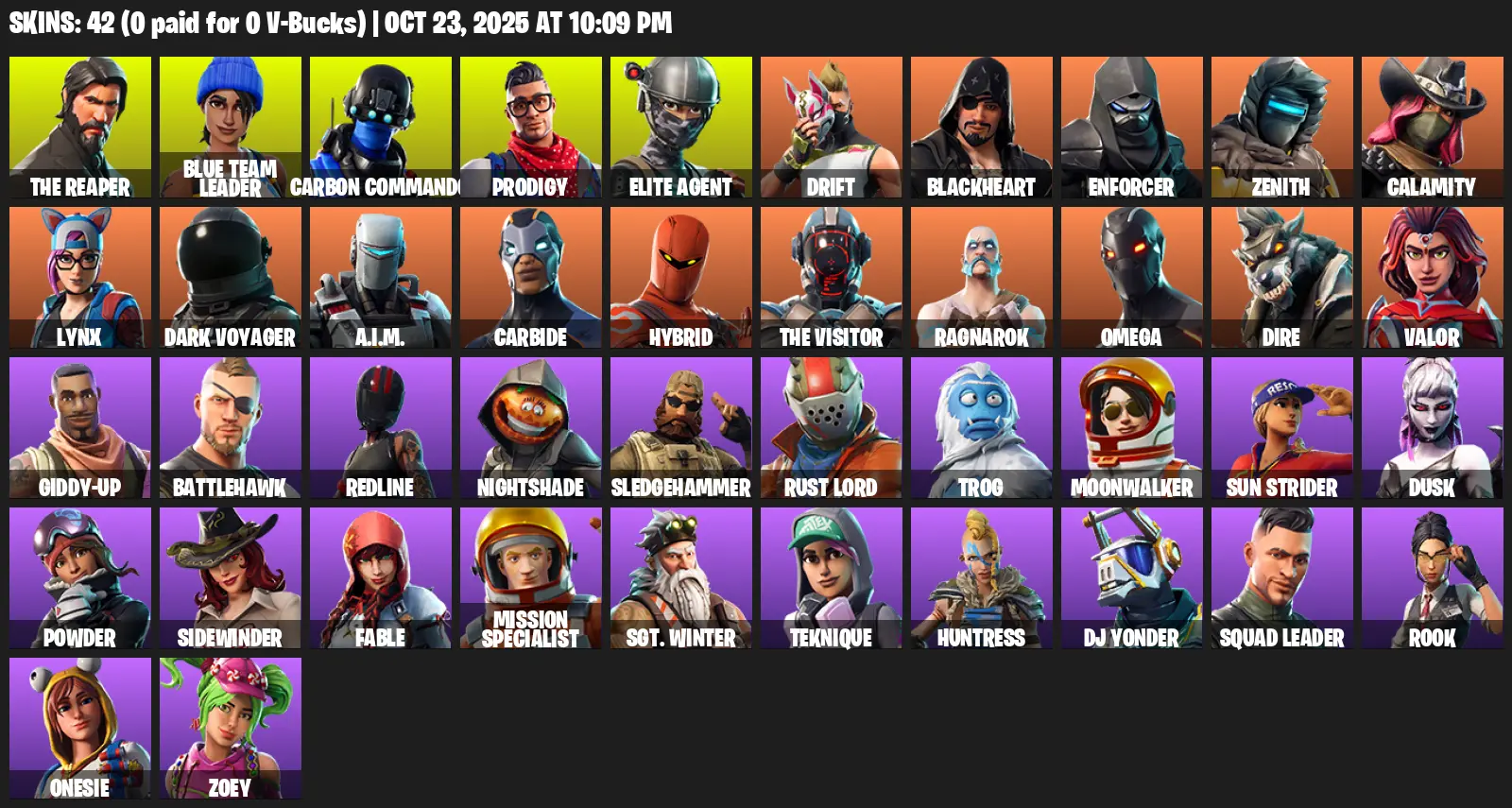 [PC/PSN/XBOX] | 42 skins | Take The L | The Reaper | Elite Agent | Omega | Blue Team Leader | Carbon Commando | Prodigy | Drift | #NWS6331 | #MBFN