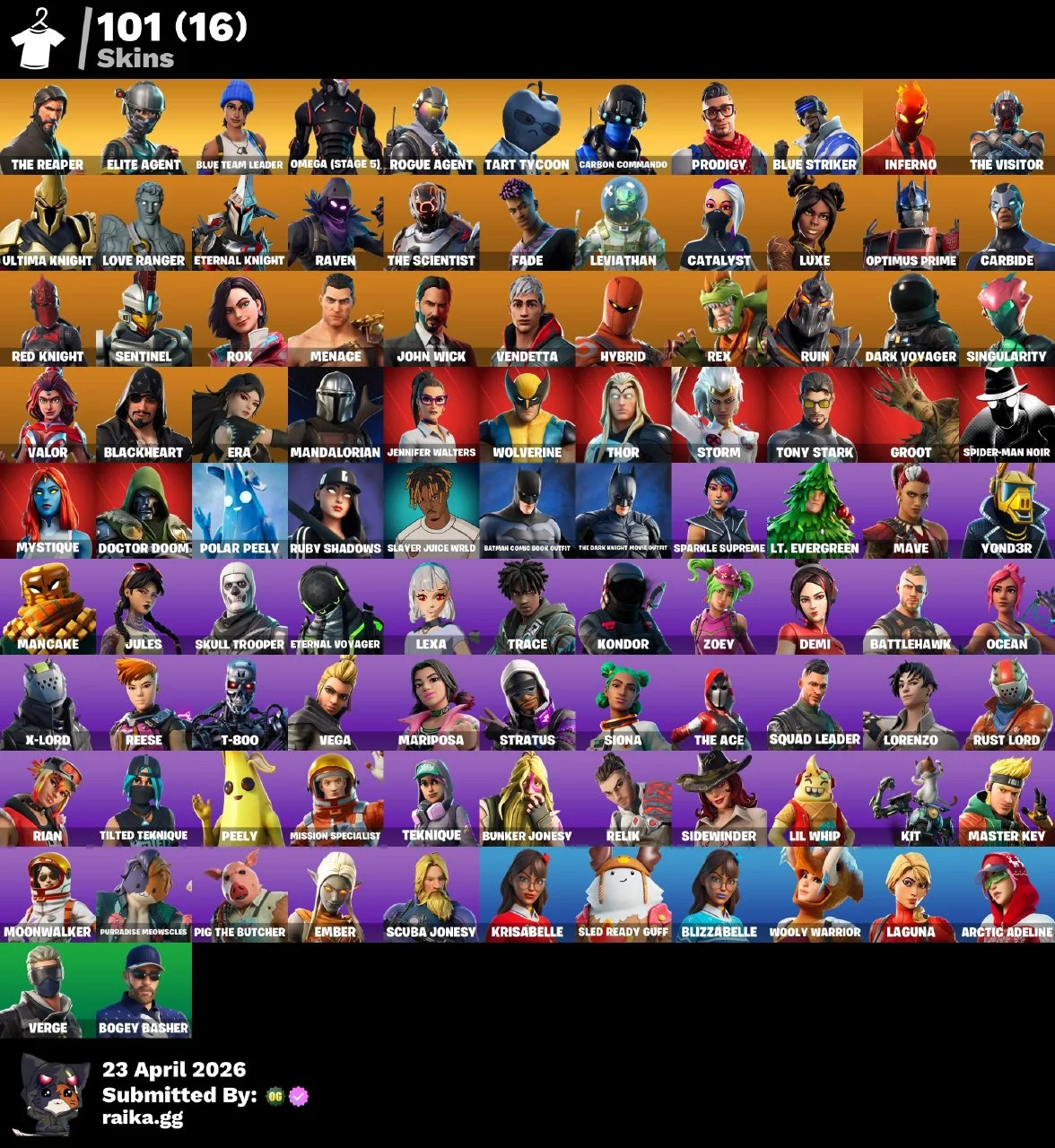 [PC/PSN/XBOX/Nintendo] 101 skins F/A : Leviathan Axe | Take The L | The Reaper | Elite Agent | John Wick | Skull Trooper | Blue Team Leader | Omega (stage 5) | Tart Tycoon | Rogue Agent | Prodigy | Leviathan
