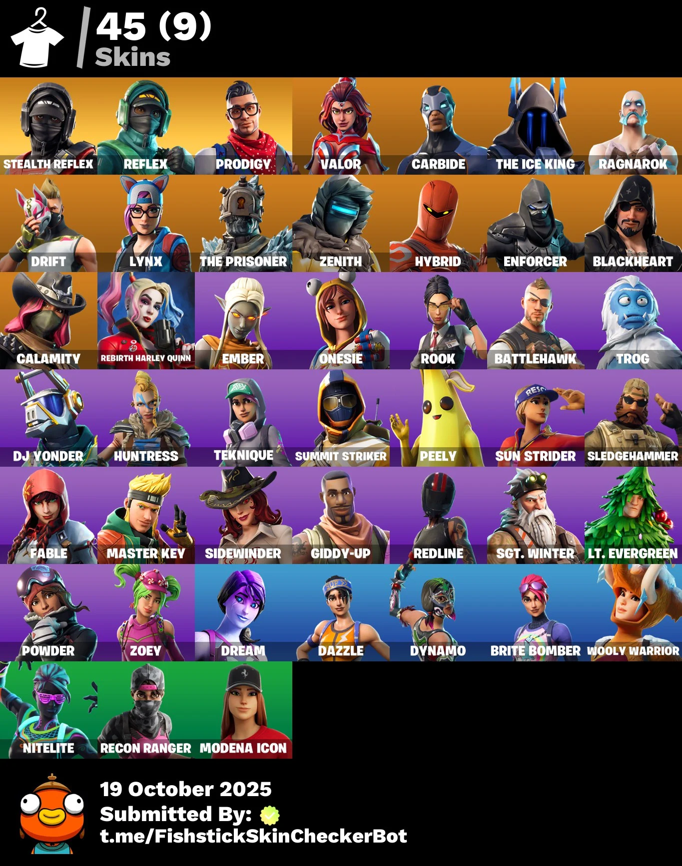 [PC/PSN/XBOX/NINTENDO] 45 skins | Stealth Reflex | Reflex | Prodigy | Take The Elf | Sing Along | Valor | Carbide | The Ice King | Ragnarok | Drift | Lynx | The Prisoner | Zenith | Hybrid | 500 VB
