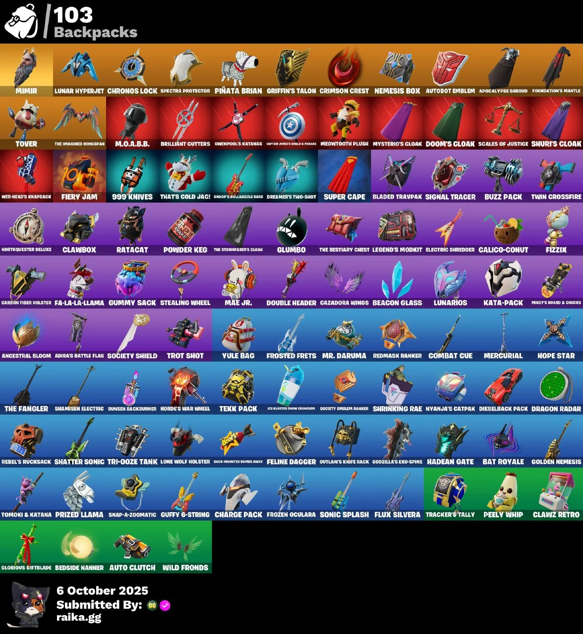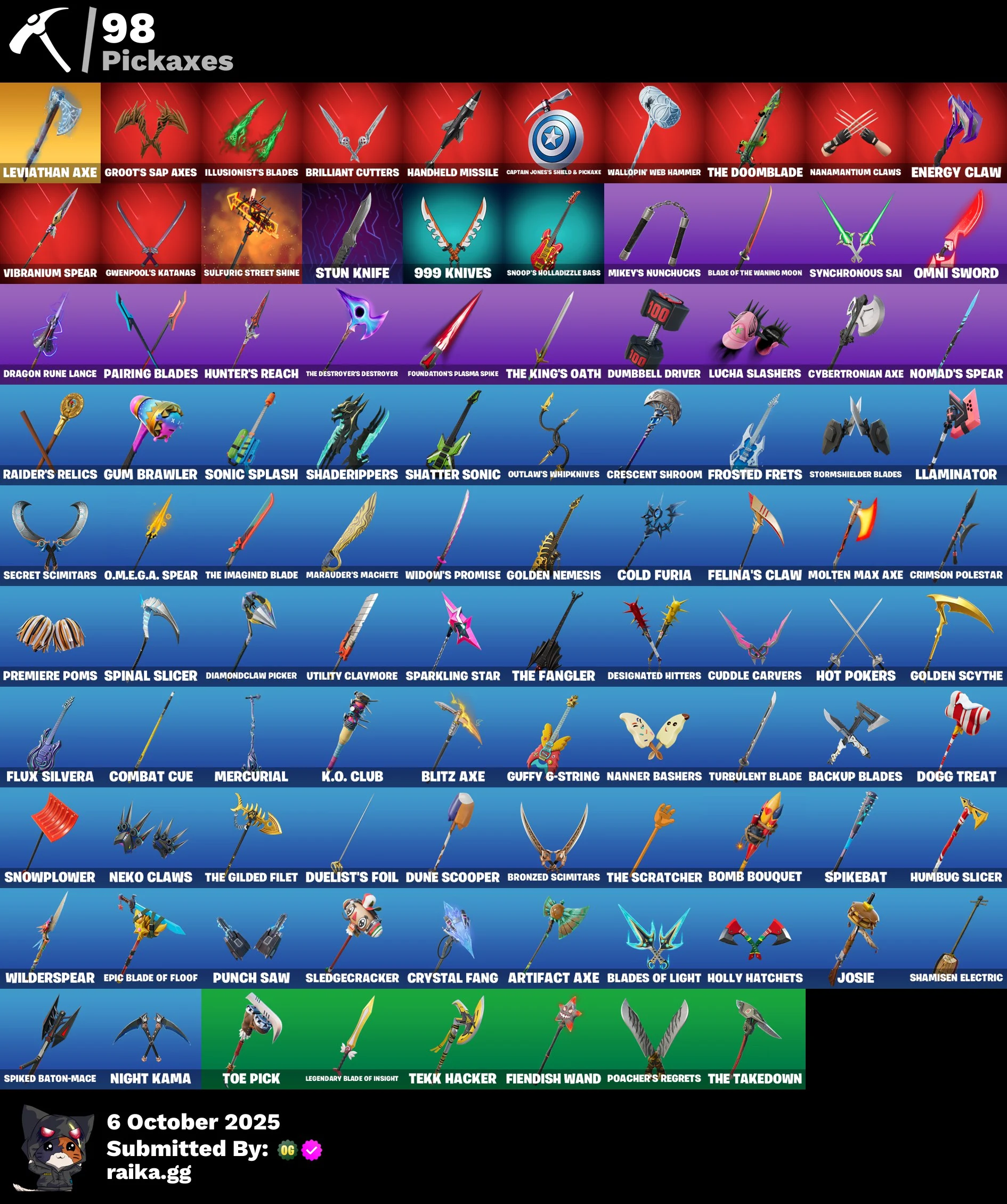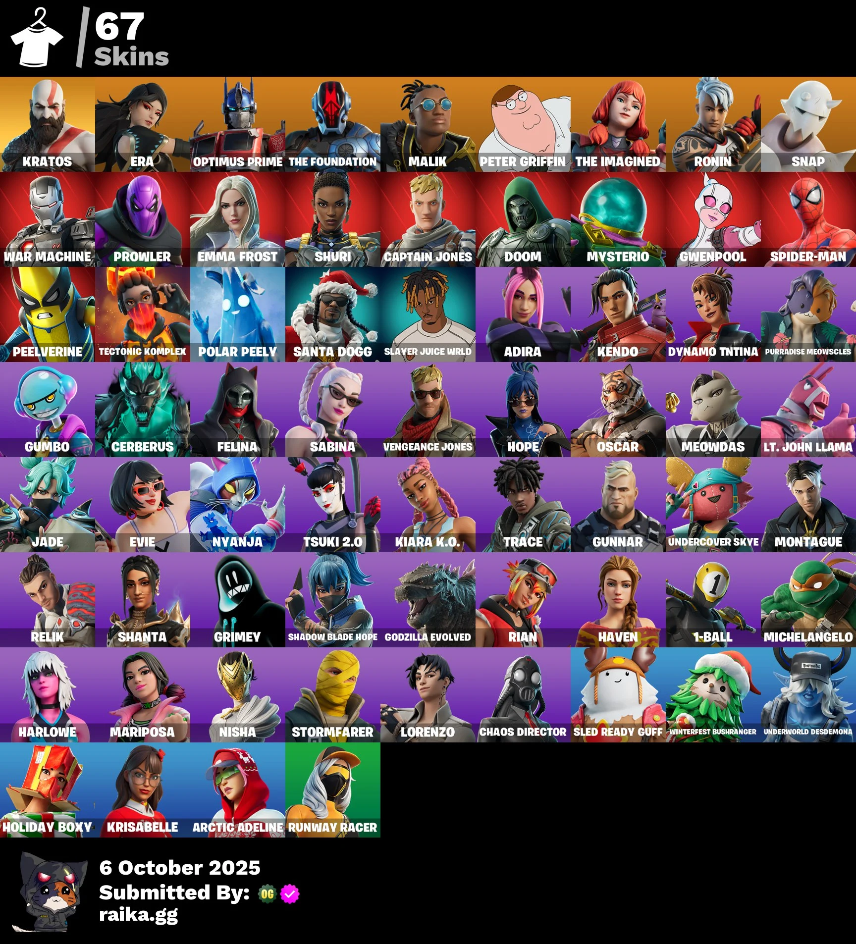 PC/PSN/Xbox/Nintendo 67 skins | Leviathan Axe | Kratos | Era | Optimus Prime | The Foundation | Malik | Peter Griffin | The Imagined | Ronin | Snap | War Machine | Prowler | 760 VB