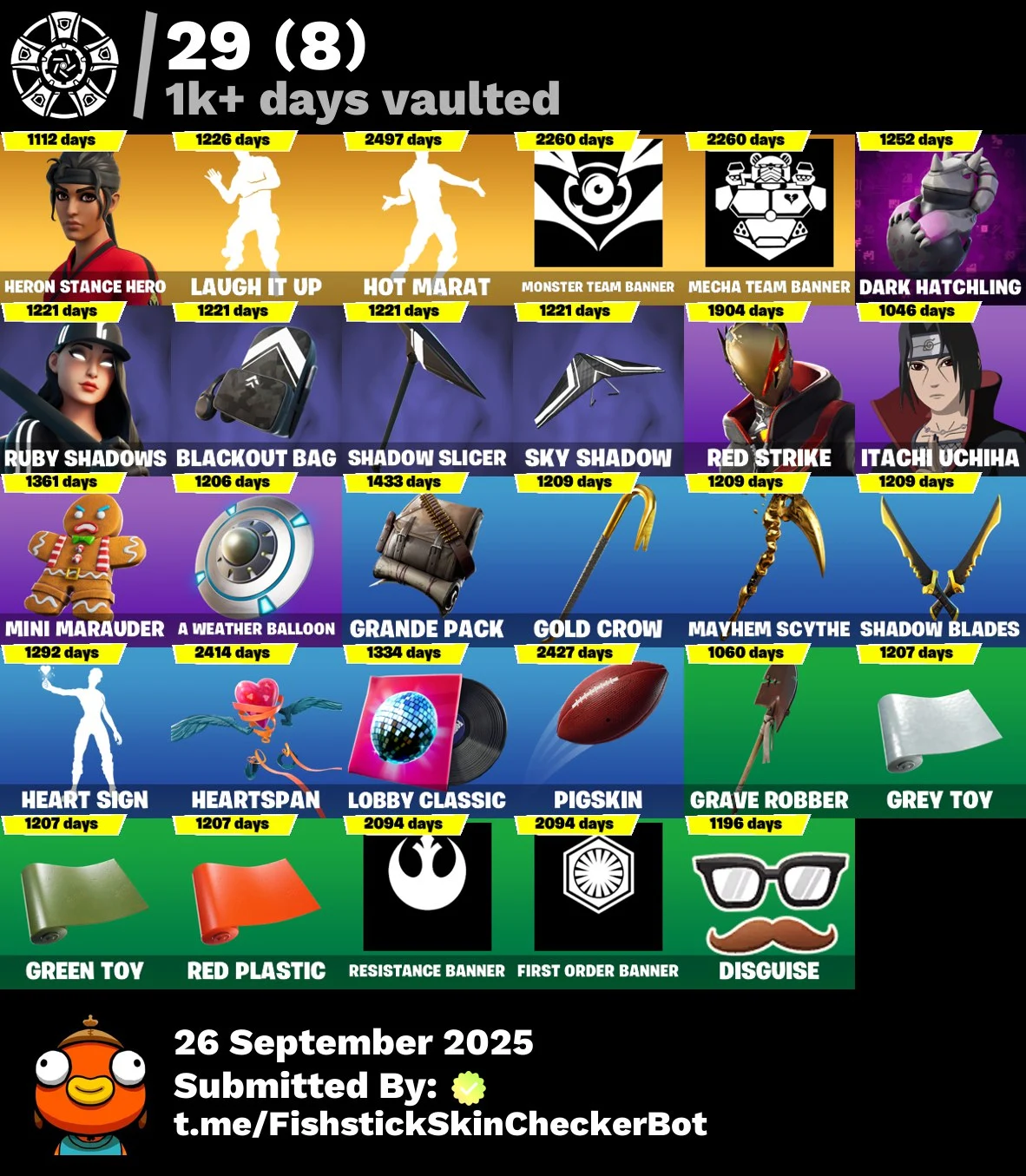 [PC/XBOX] 129 skins | Itachi | Merry Mint Axe | Heron Stance Hero | Sentinel | Luxe | The Prisoner | Calamity | Vendetta | Catalyst | The Imagined | Ruin | The Cube Queen | Ronin | 350 VB