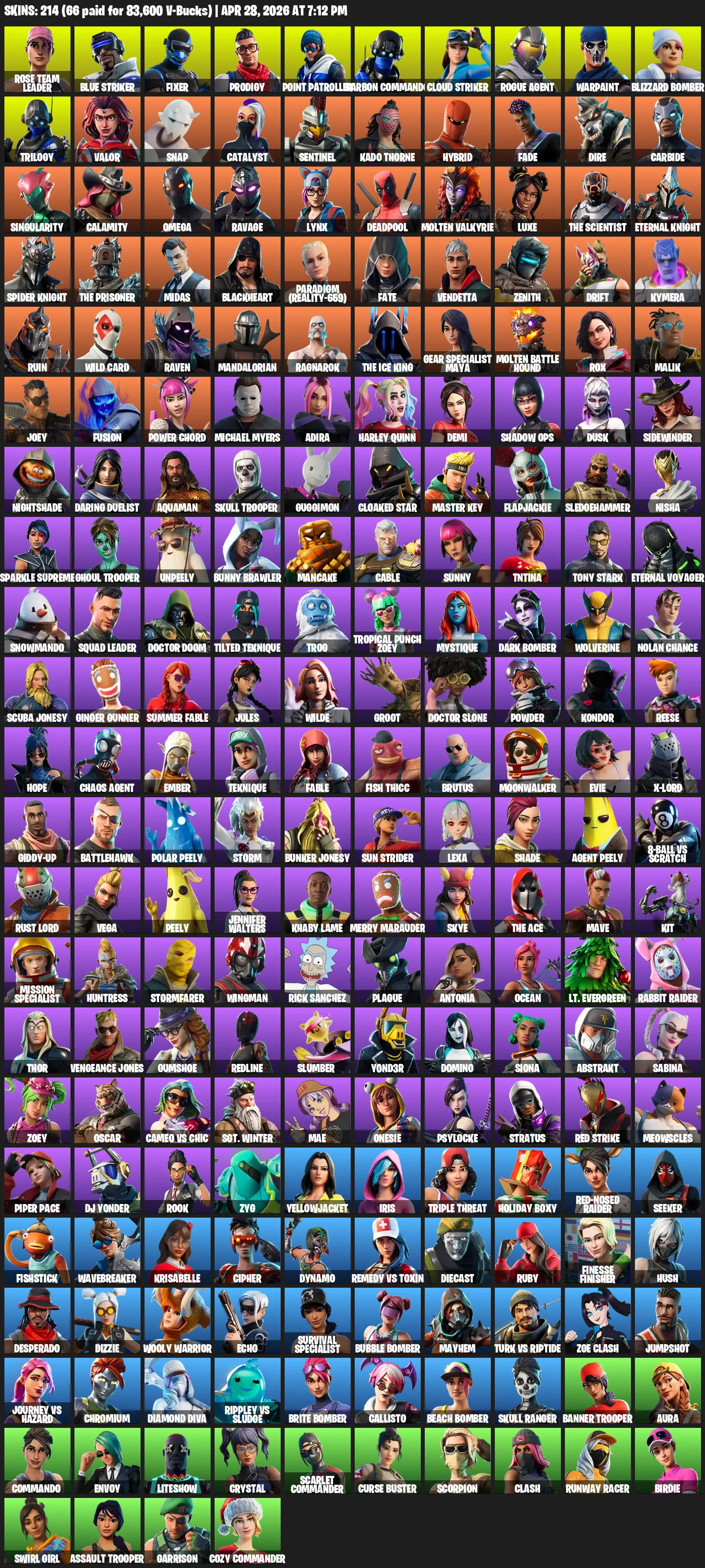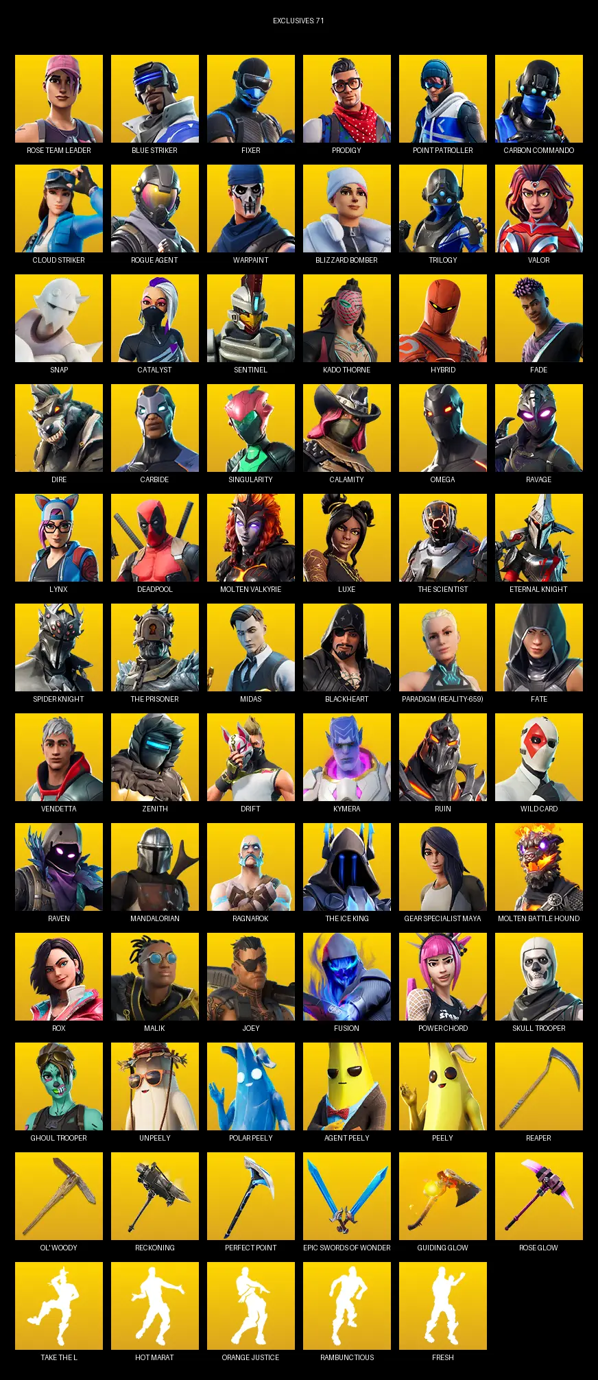 [PC/XBOX] | 214 skins | Take The L | OG STW | Omega | Rose Team Leader | Blue Striker | Fixer | Prodigy | Point Patroller | Carbon Commando | #MFD2530