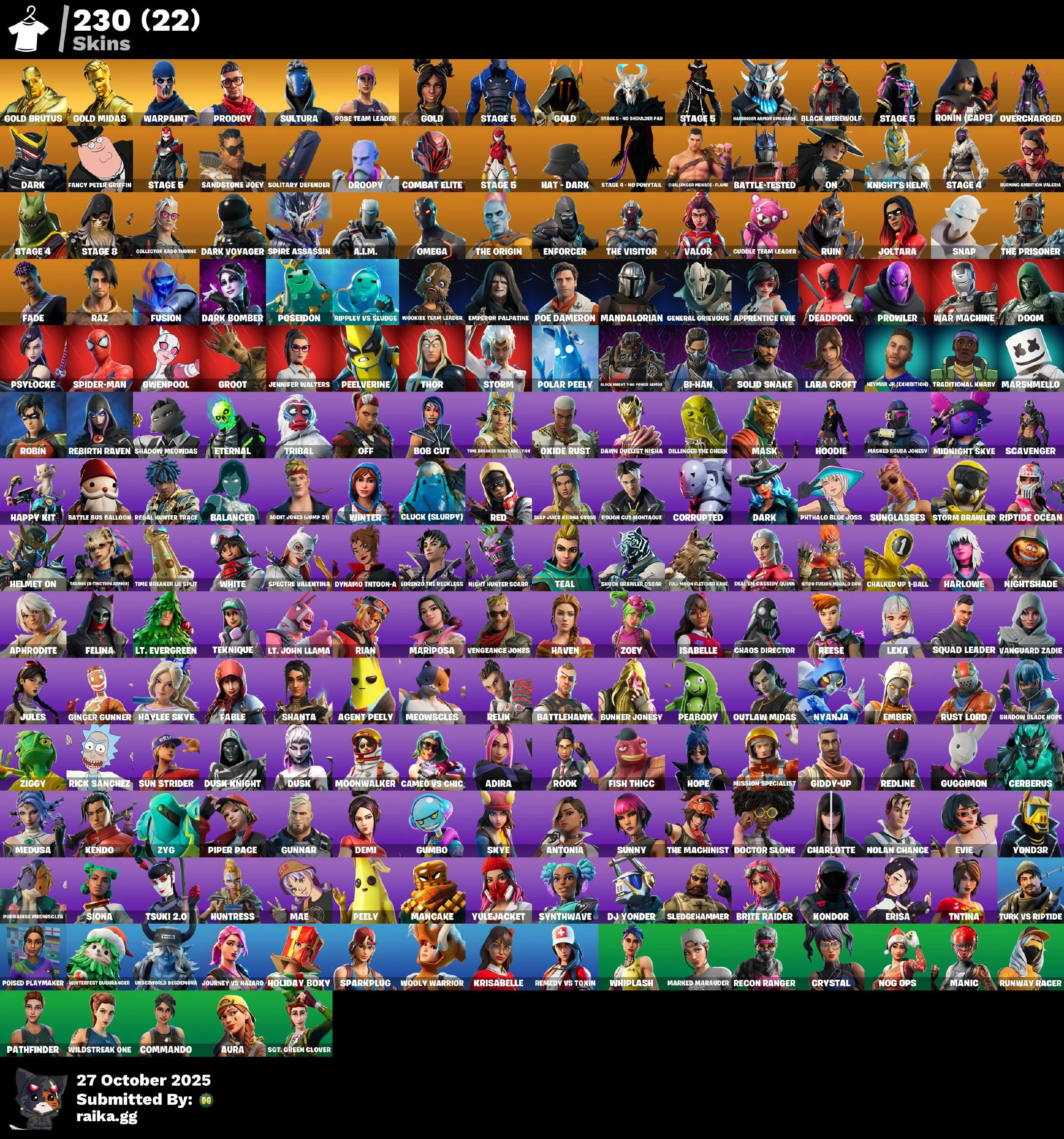 [PC/XBOX] 230 skins | OG STW | Take The L | Jules | Aura | Lara Croft | Candy Axe | Peely | Omega | Deadpool Mam104