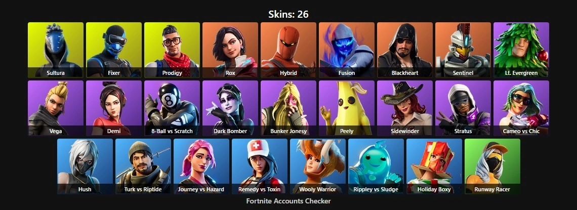 PC/XBOX 26 Skins⚡ | Peely | Sultura | Fixer | Prodigy | Rox | Hybrid | Fusion | Blackheart | Sentinel | Lt. Evergreen | Vega | Demi | 8-Ball vs Scratch