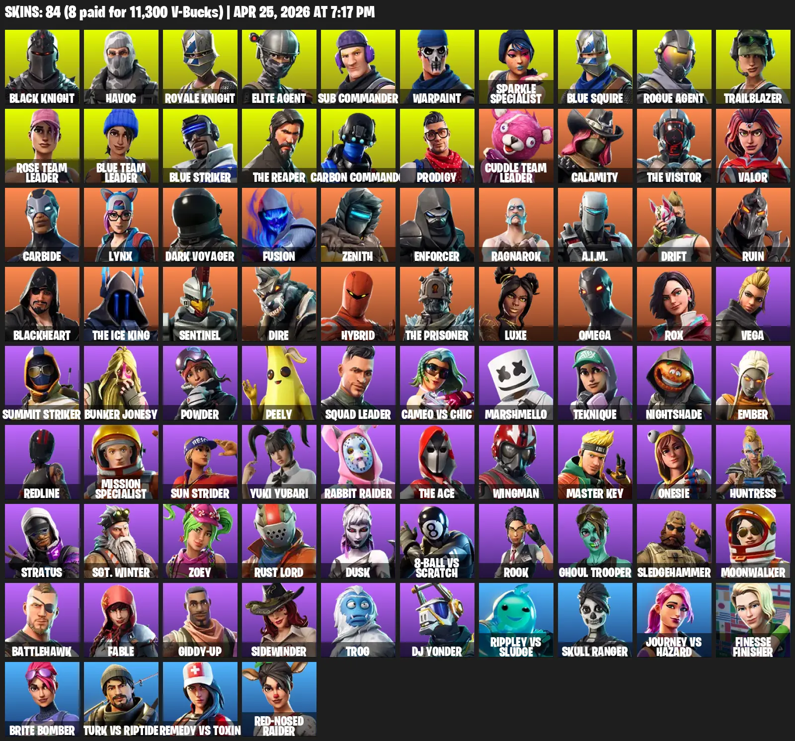[PC/XBOX] | 84 skins | Take The L | Floss | OG STW | Black Knight | Sparkle Specialist | Royale Knight | The Reaper | Elite Agent | #UIK7101