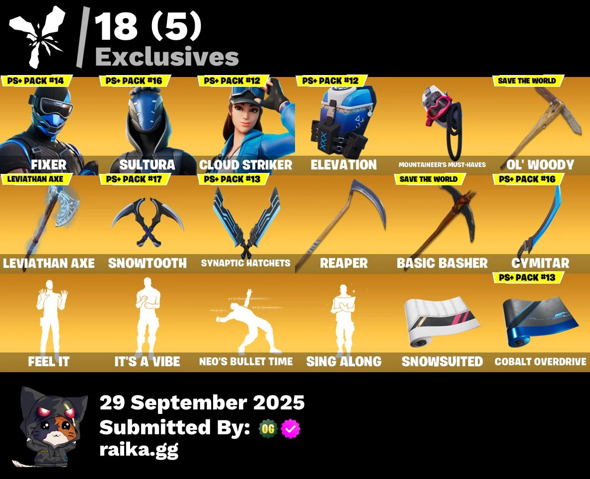 PC/Xbox/Nintendo 104 skins | Leviathan Axe | Fixer | Sultura | Cloud Striker | Menace | Ronin | Predator | Red Knight | Twyn | Raz | The Foundation | The Imagined | 200 VB